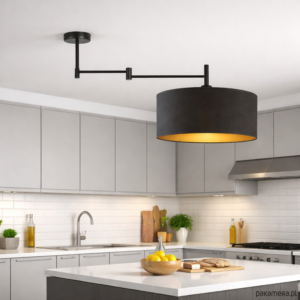 Czarna lampa sufitowa na wysięgniku ruchomym RANGUN GOLD w stylu glamour