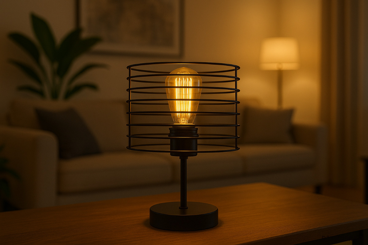 Czarna lampka stołowa z drucianym kloszem w stylu loftowym LUKKA LOFT