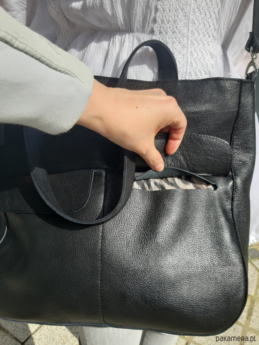 Czarna miękka skórzana torba z kieszonkami