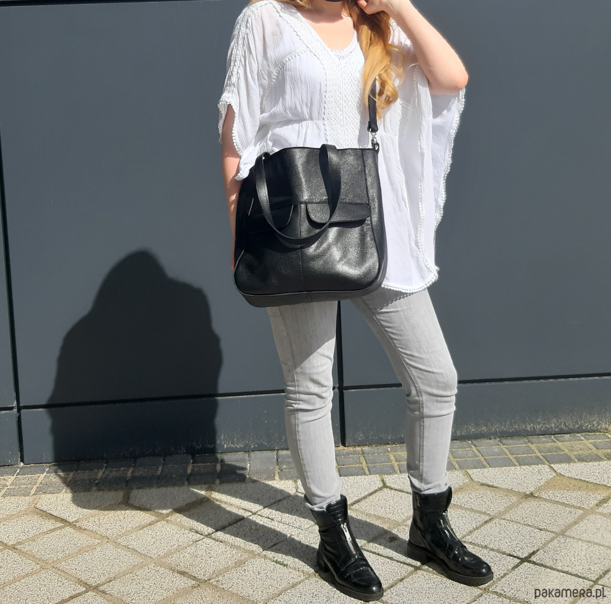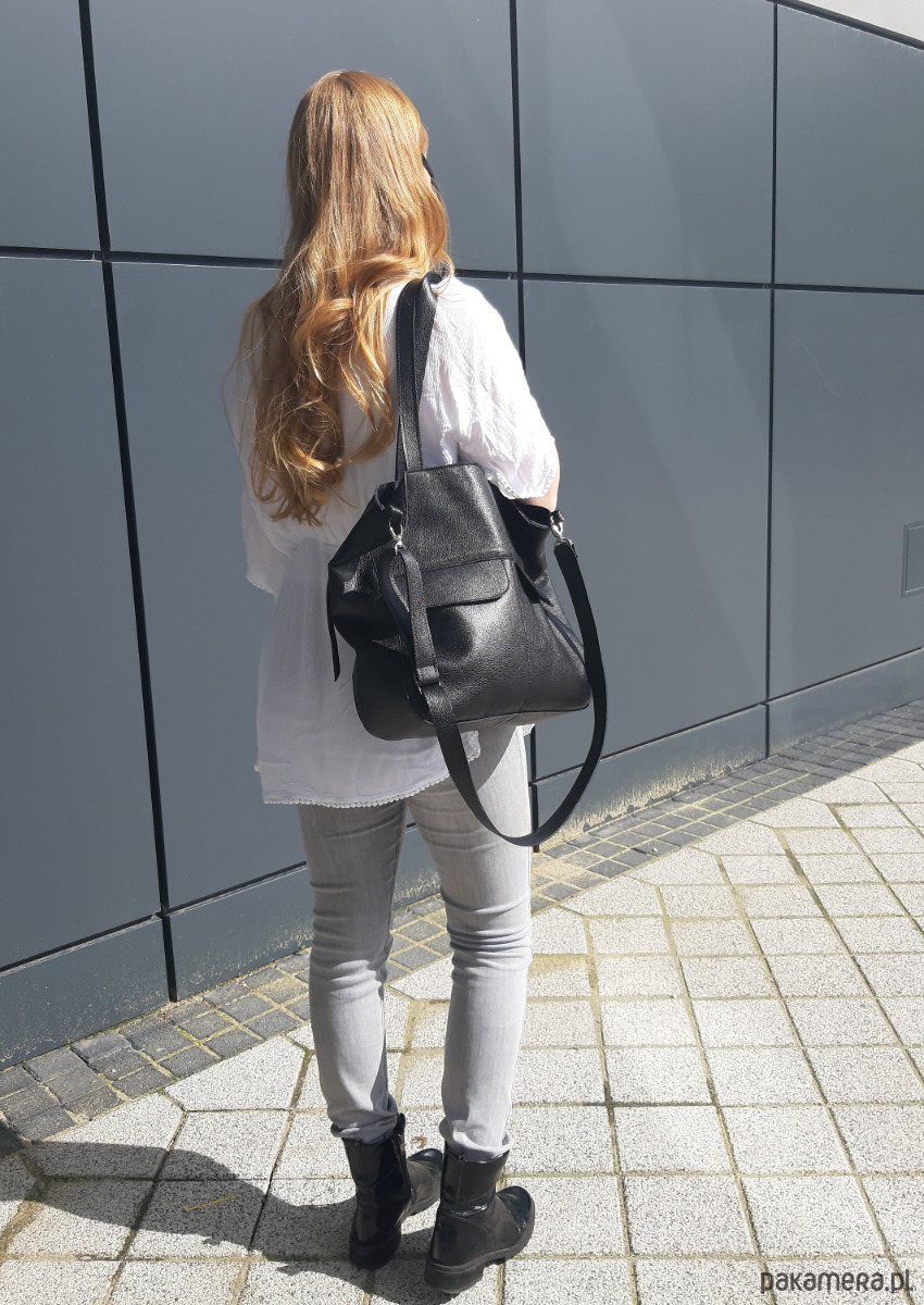 Torba z miękkiej skóry z delikatną fakturą, ładnie układa się podczas noszenia.