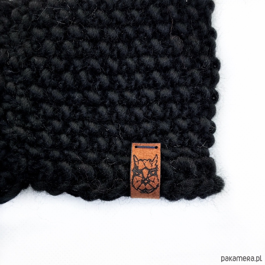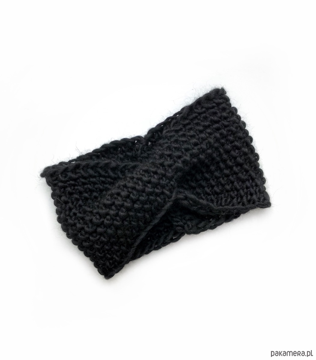 Czarna wełniana opaska robiona na drutach ma odcień nasyconej czerni. Jest miękka, wykonana z wełny peruwiańskiej owiec rasy Corriedale, czyli mieszanki z merynosem.