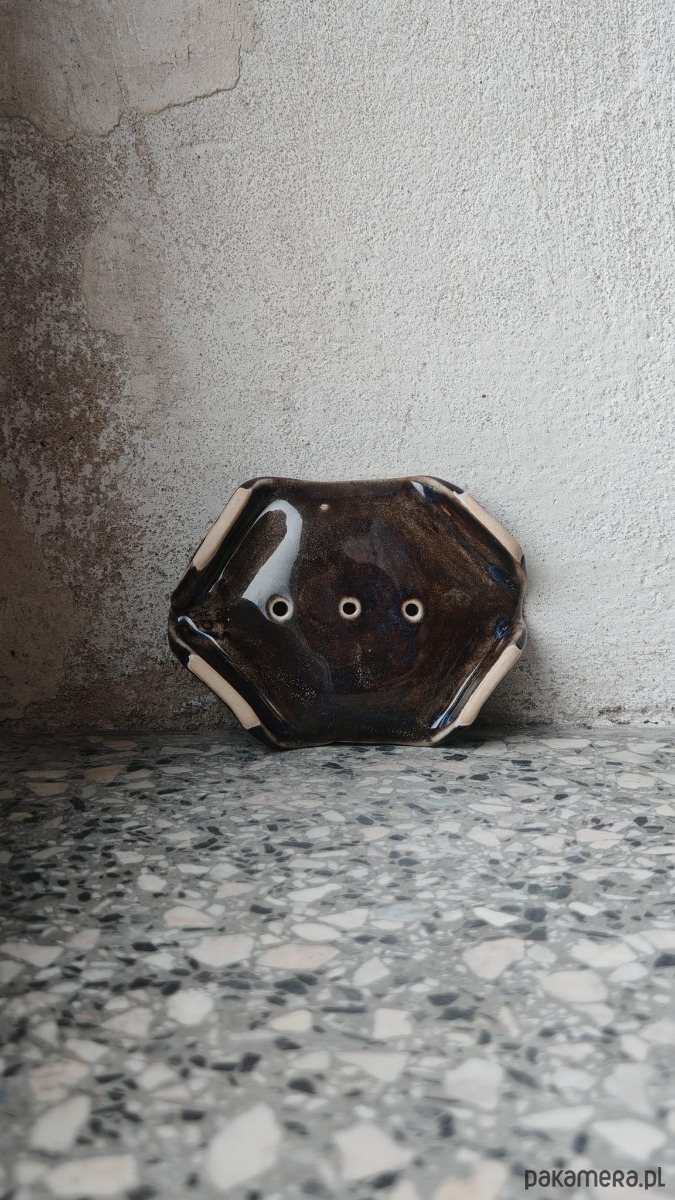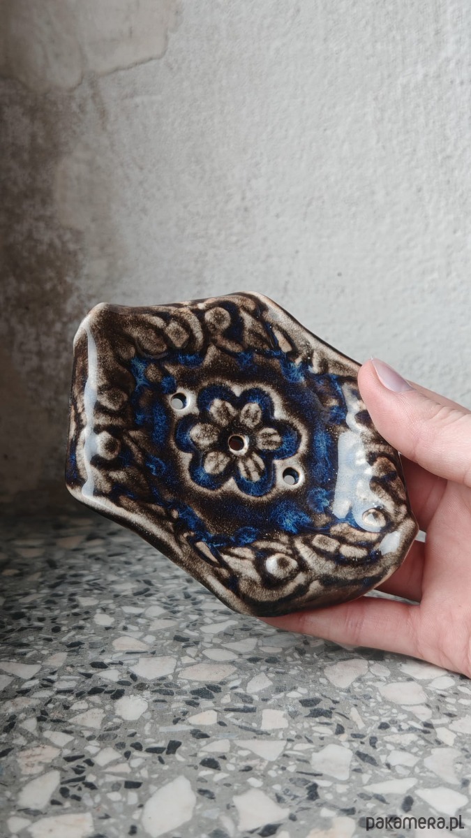 Ręcznie wykonana ceramiczna mydelniczka, długość 11cm, szerokość 8cm.