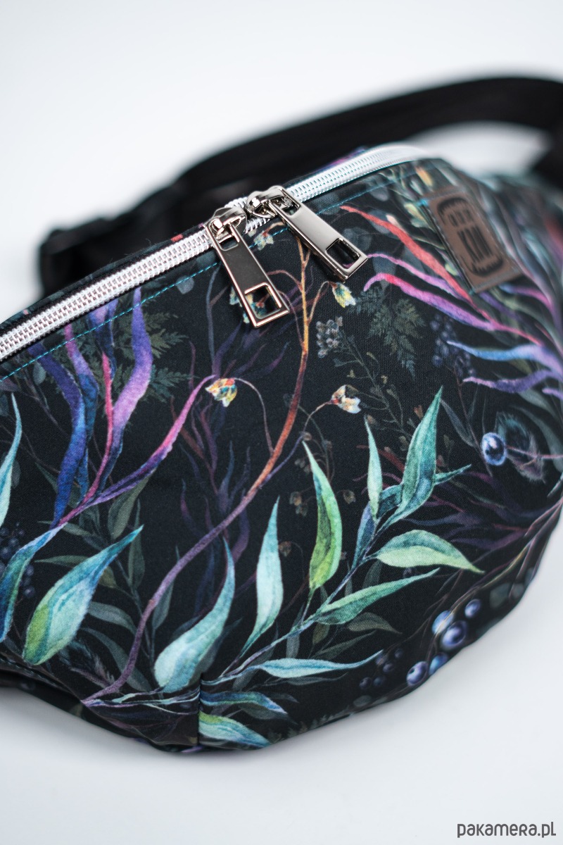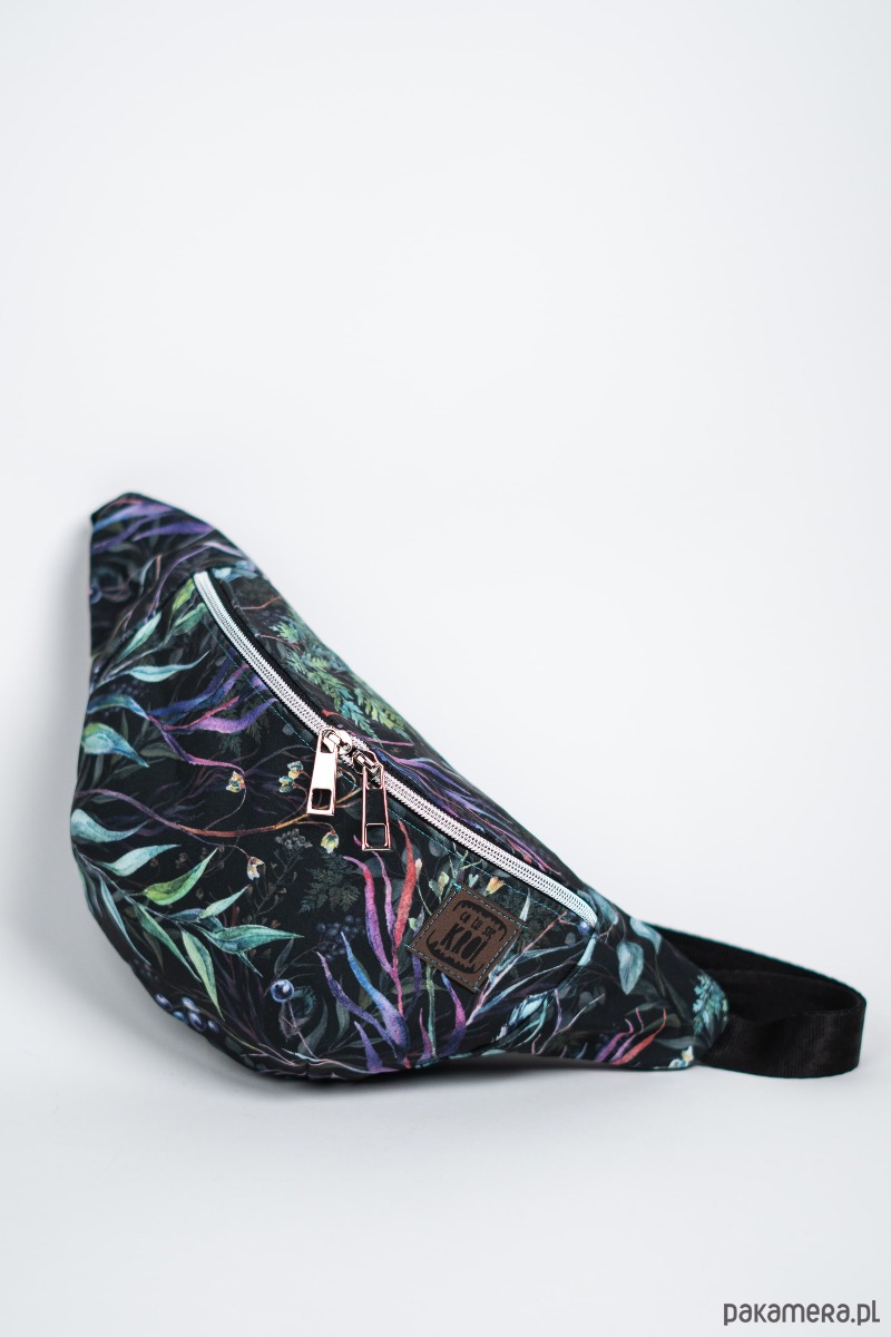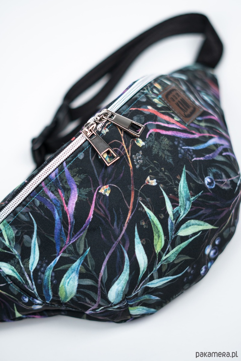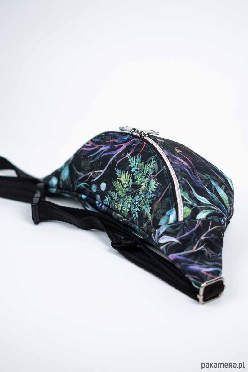 Czarna nerka damska botaniczny wzór saszetka z paprocią LEŚNE CIENIE
