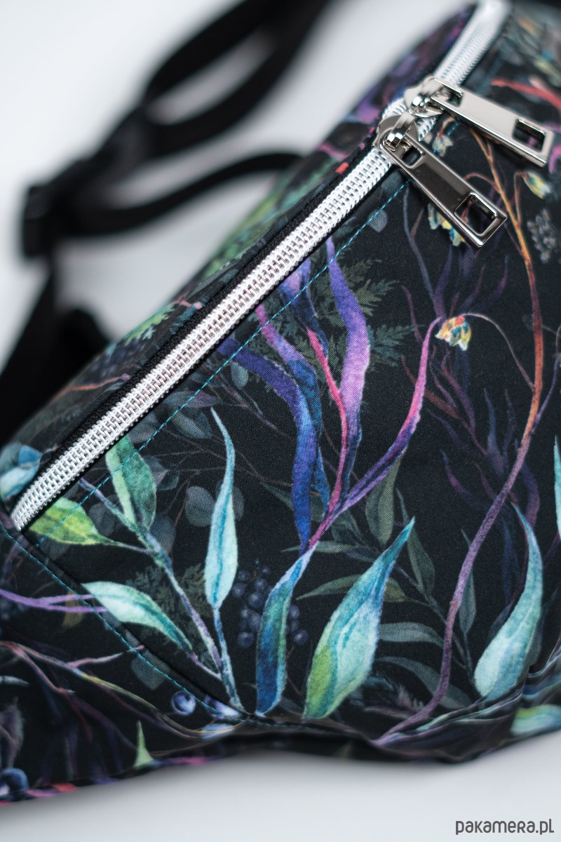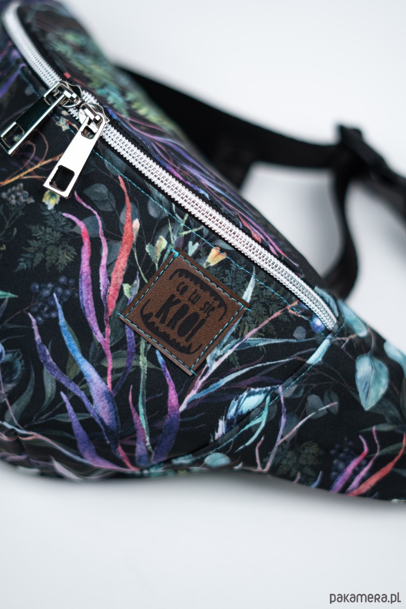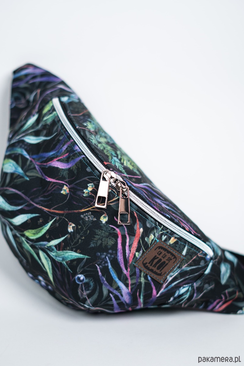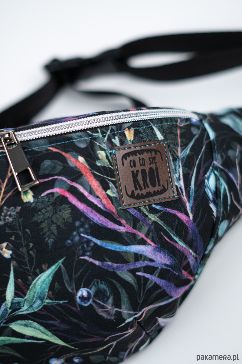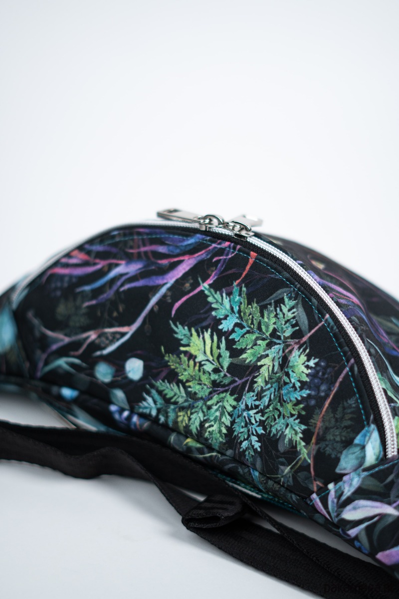Czarna nerka damska botaniczny wzór saszetka z paprocią LEŚNE CIENIE