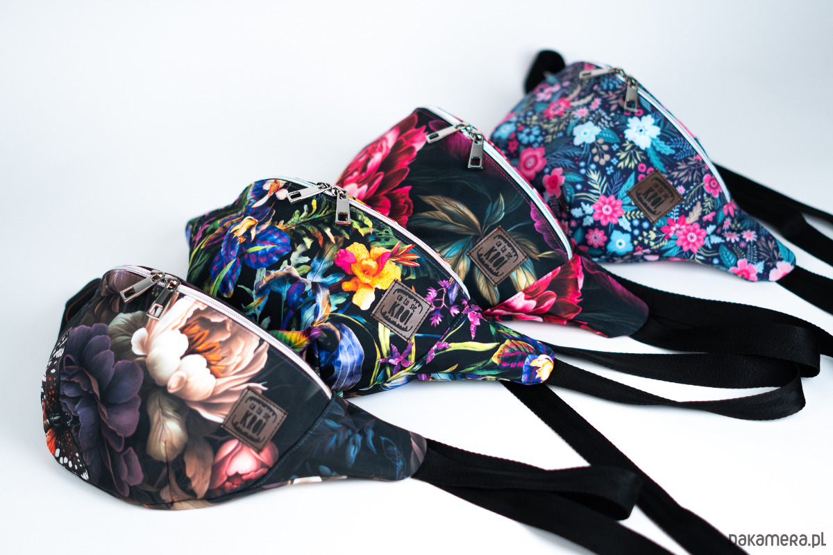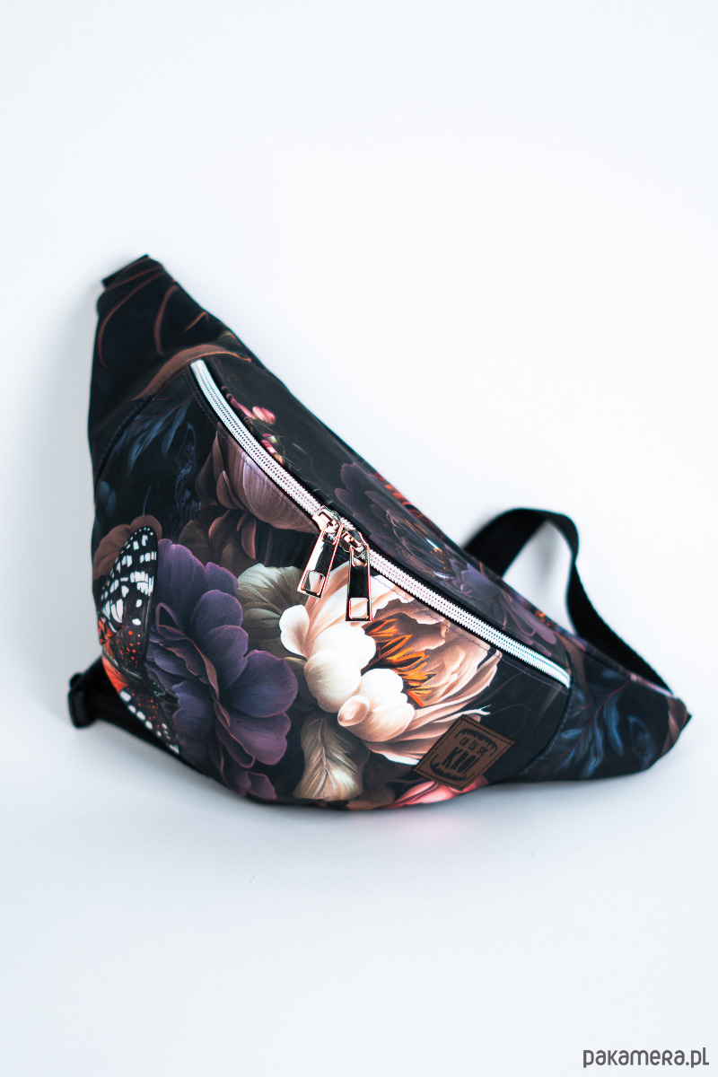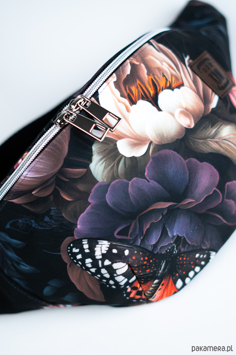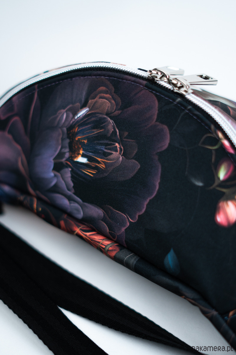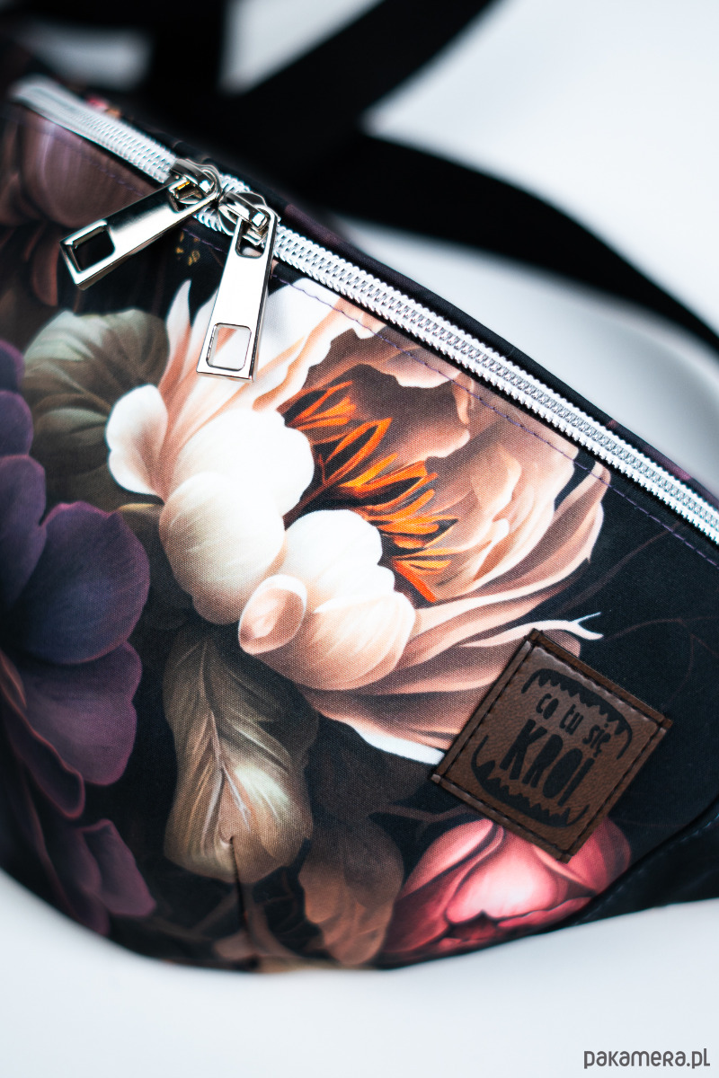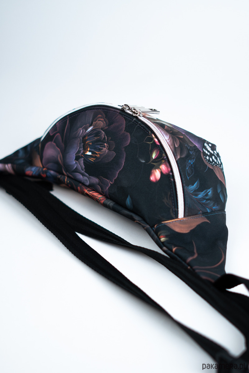 Czarna elegancka nerka damska saszetka w kwiaty róży OGRÓD O PÓŁNOCY