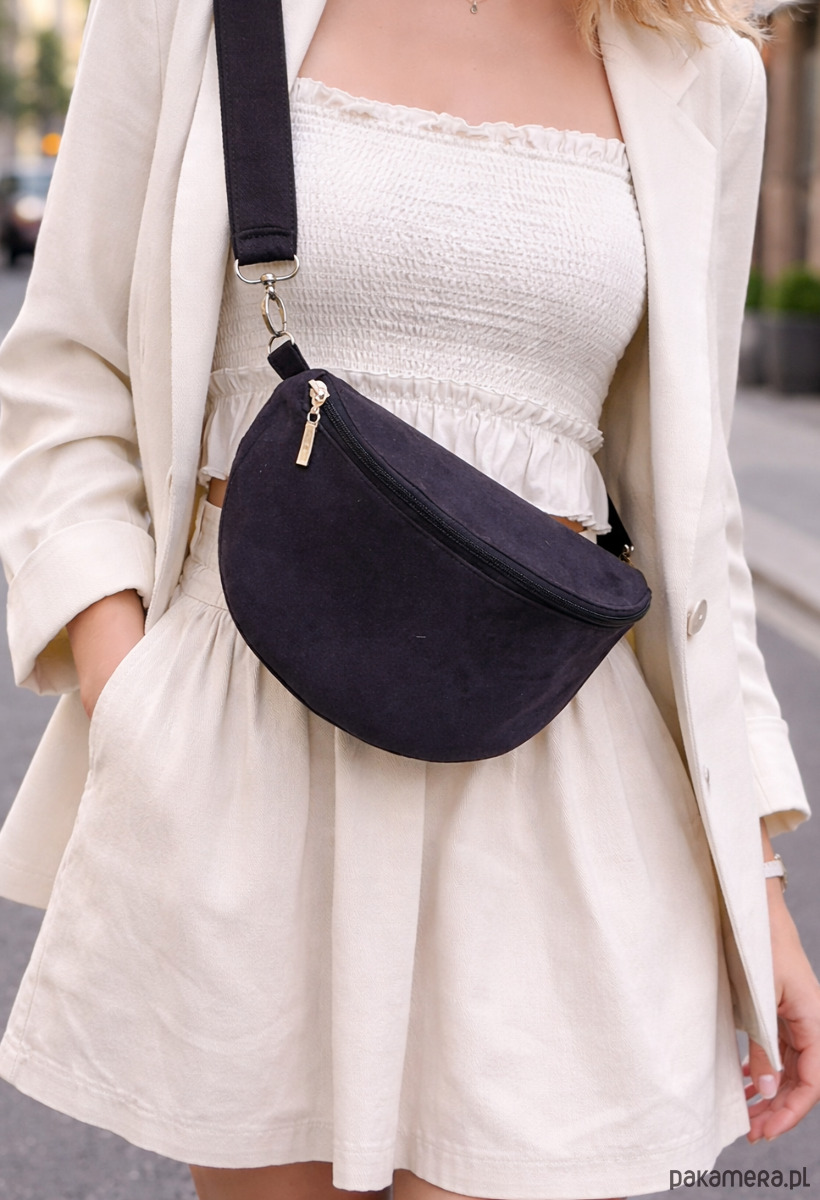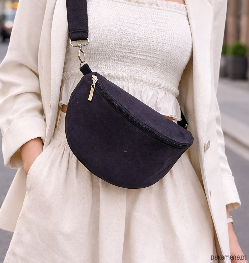 Stylowa i funkcjonalna czarna nerka damska w stylu boho to idealny wybór dla kobiet, które cenią wygodę i modny wygląd. Wykonana z miękkiego eko zamszu, doskonale wpisuje się w aktualne trendy, a jednocześnie pozostaje ponadczasowym dodatkiem do codziennych stylizacji.