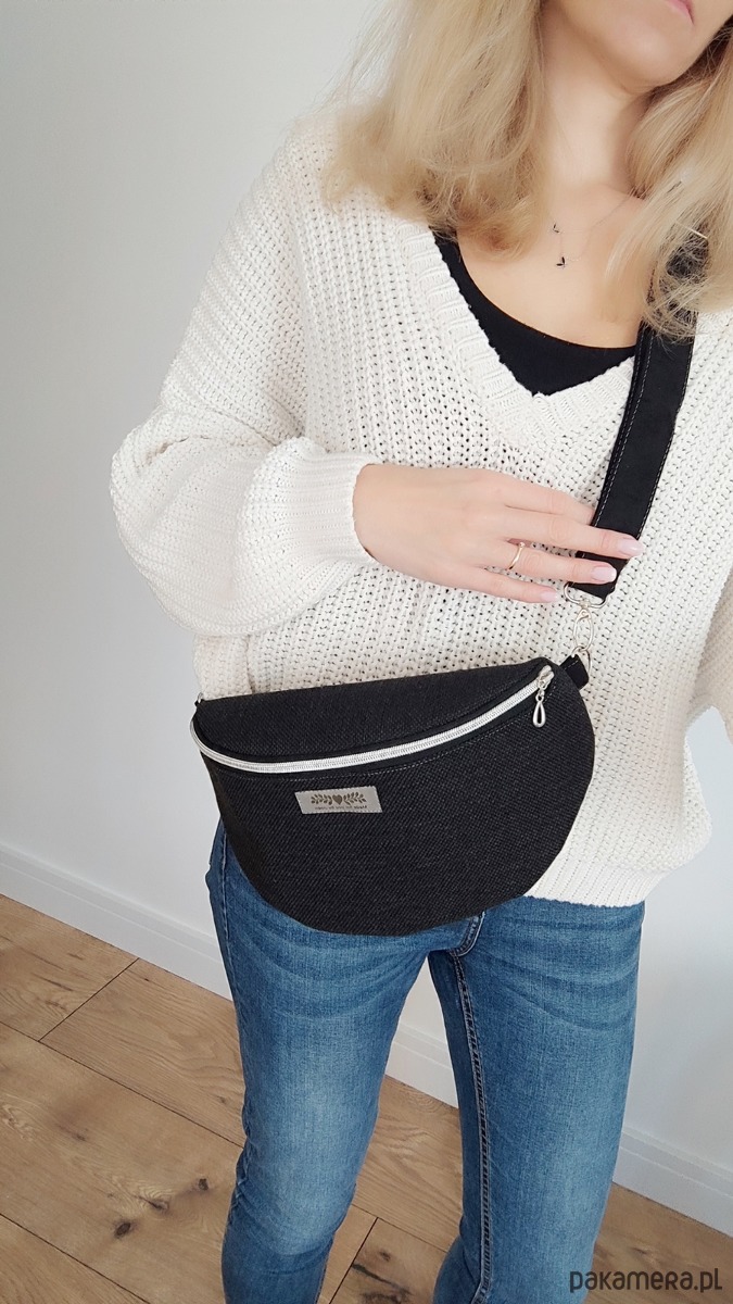 Nerka, saszetka do noszenia na ramię z regulowanym paskiem, zapinana na suwak, w środku mała kieszonka na suwak.