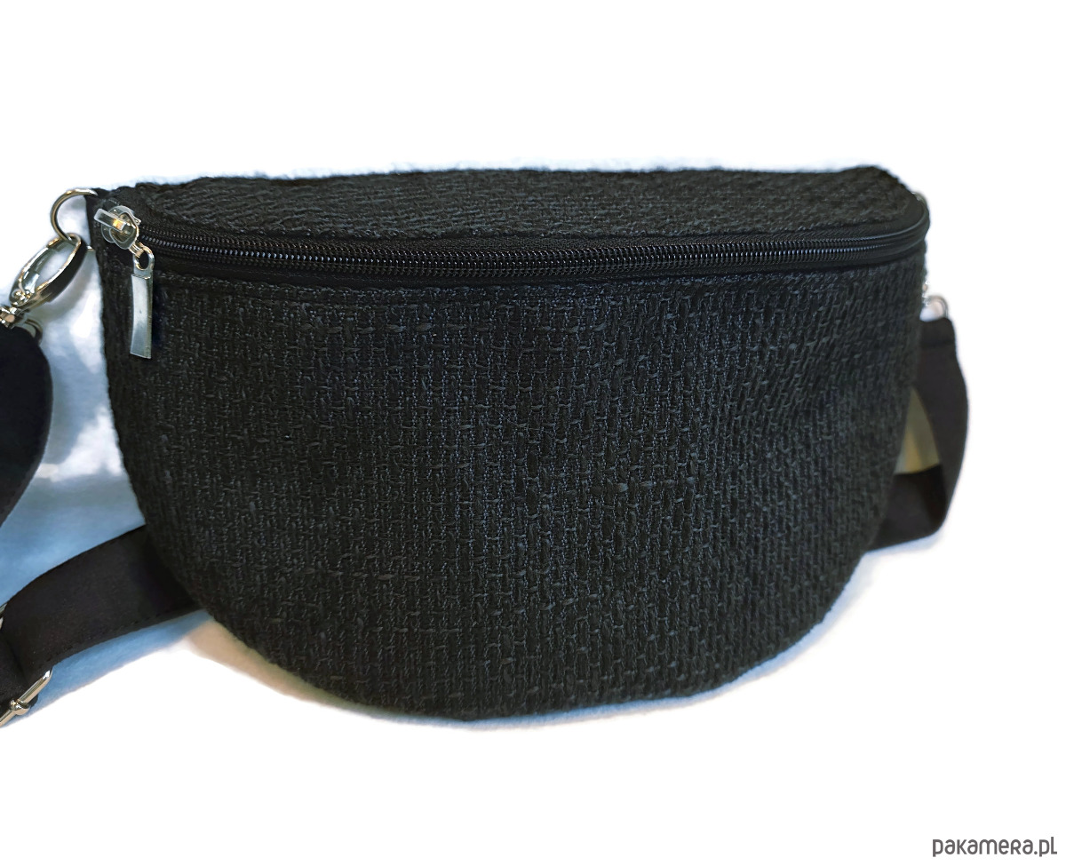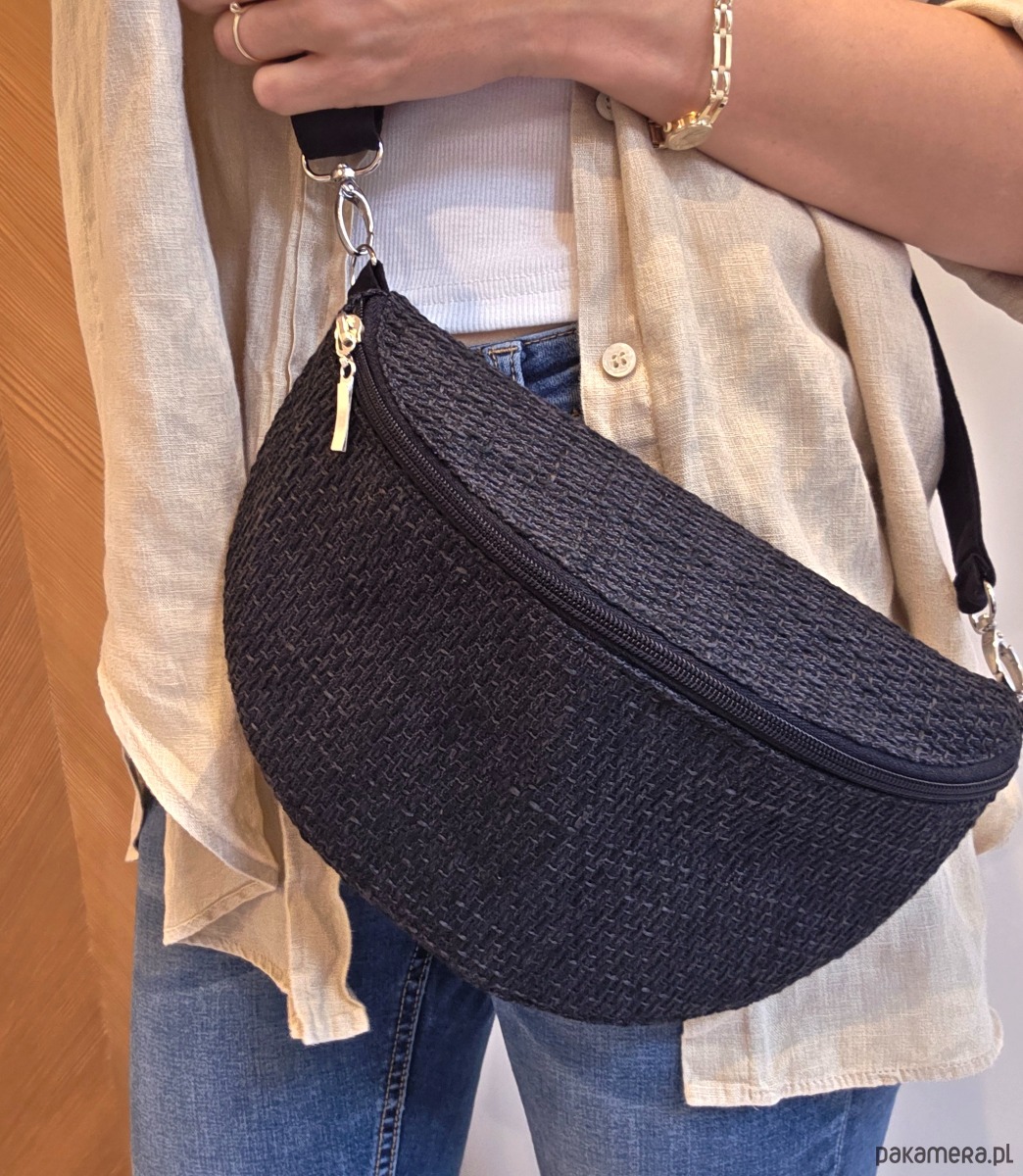 Czarna nerka pleciony materiał boho na ramię pojemna