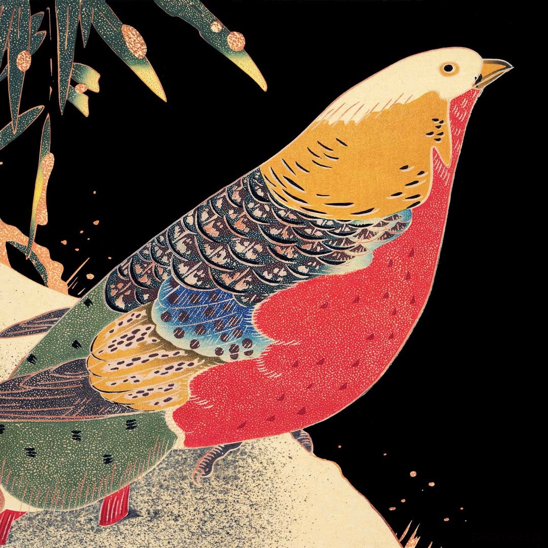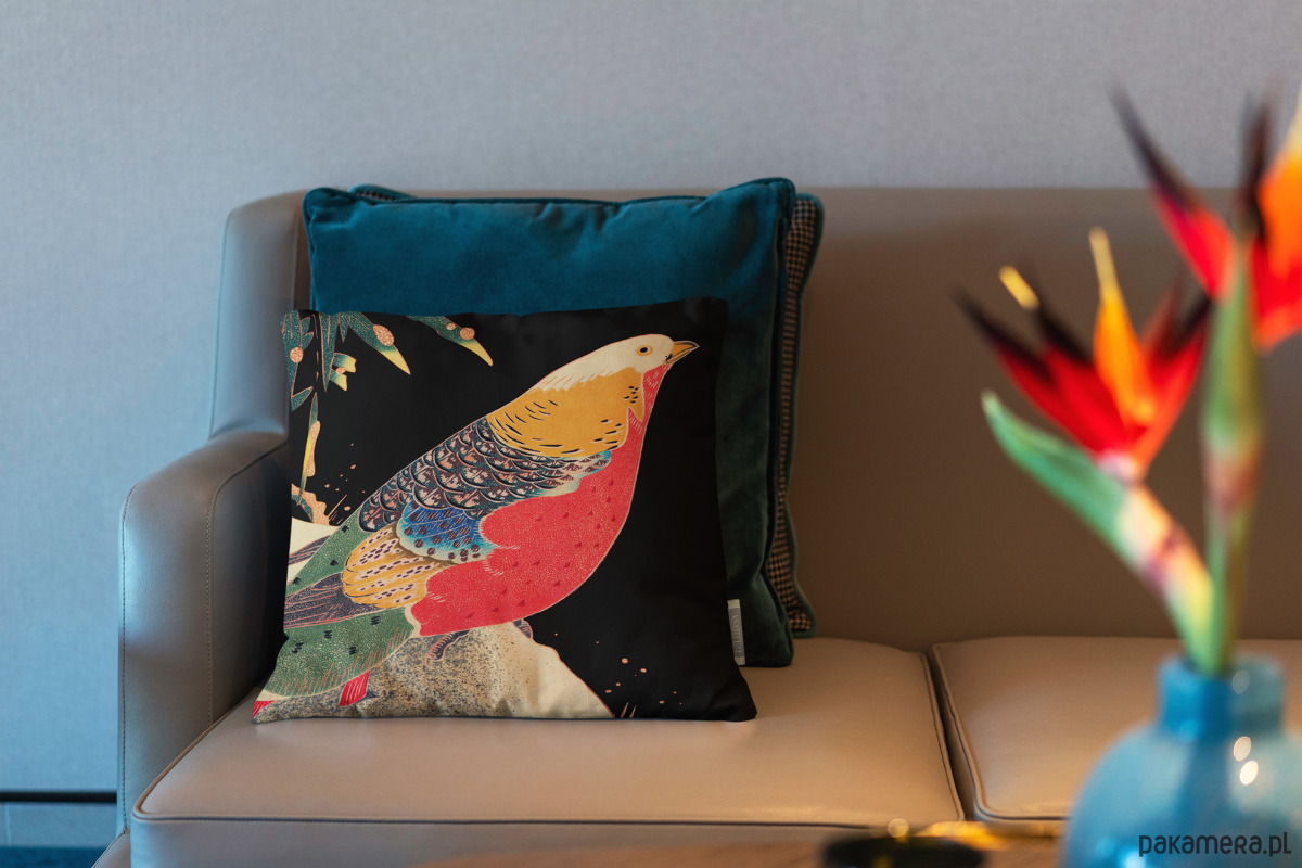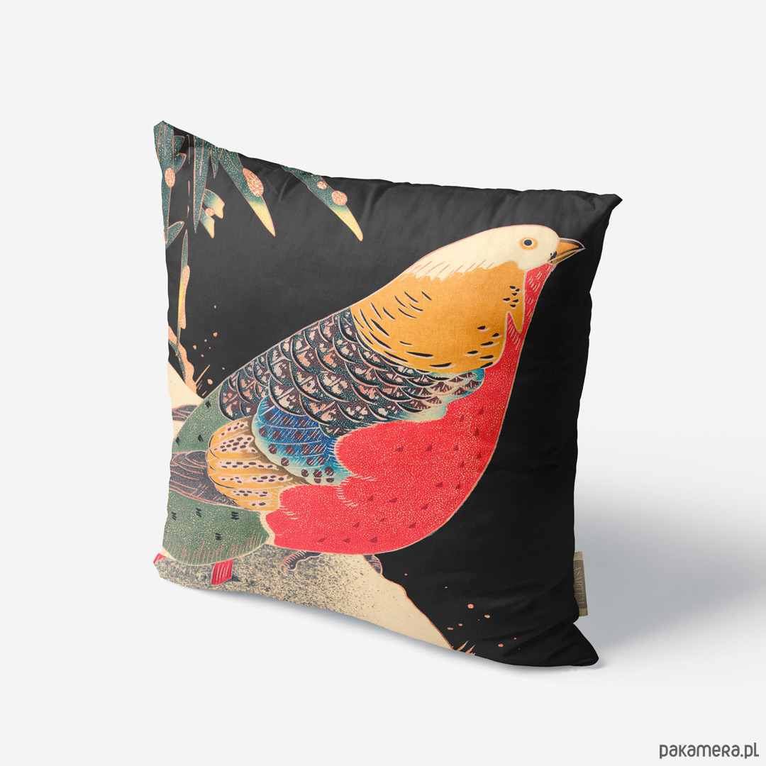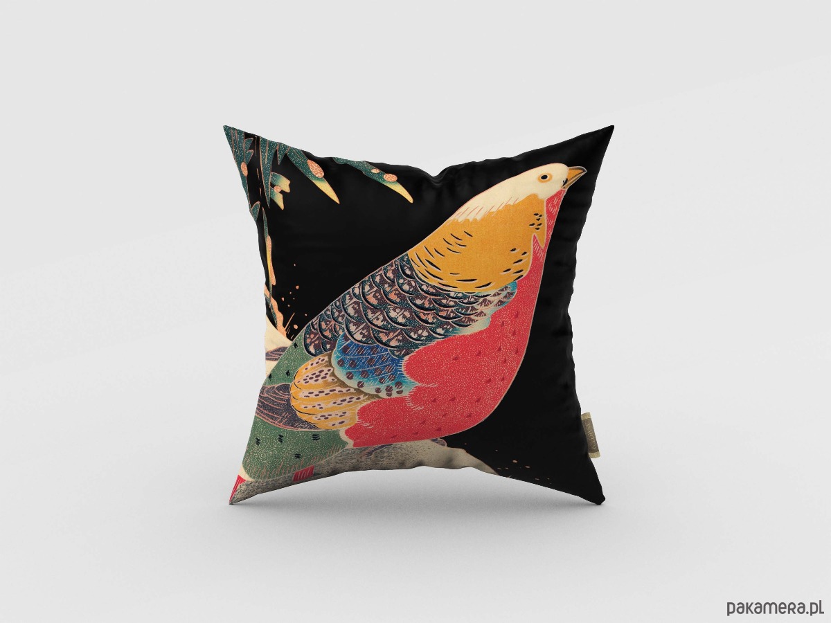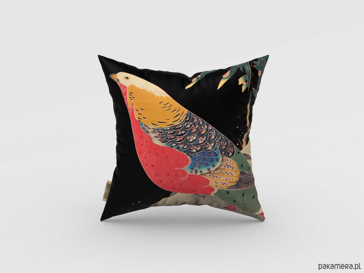 Czarna poduszka dekoracyjna z japońskim bażantem.