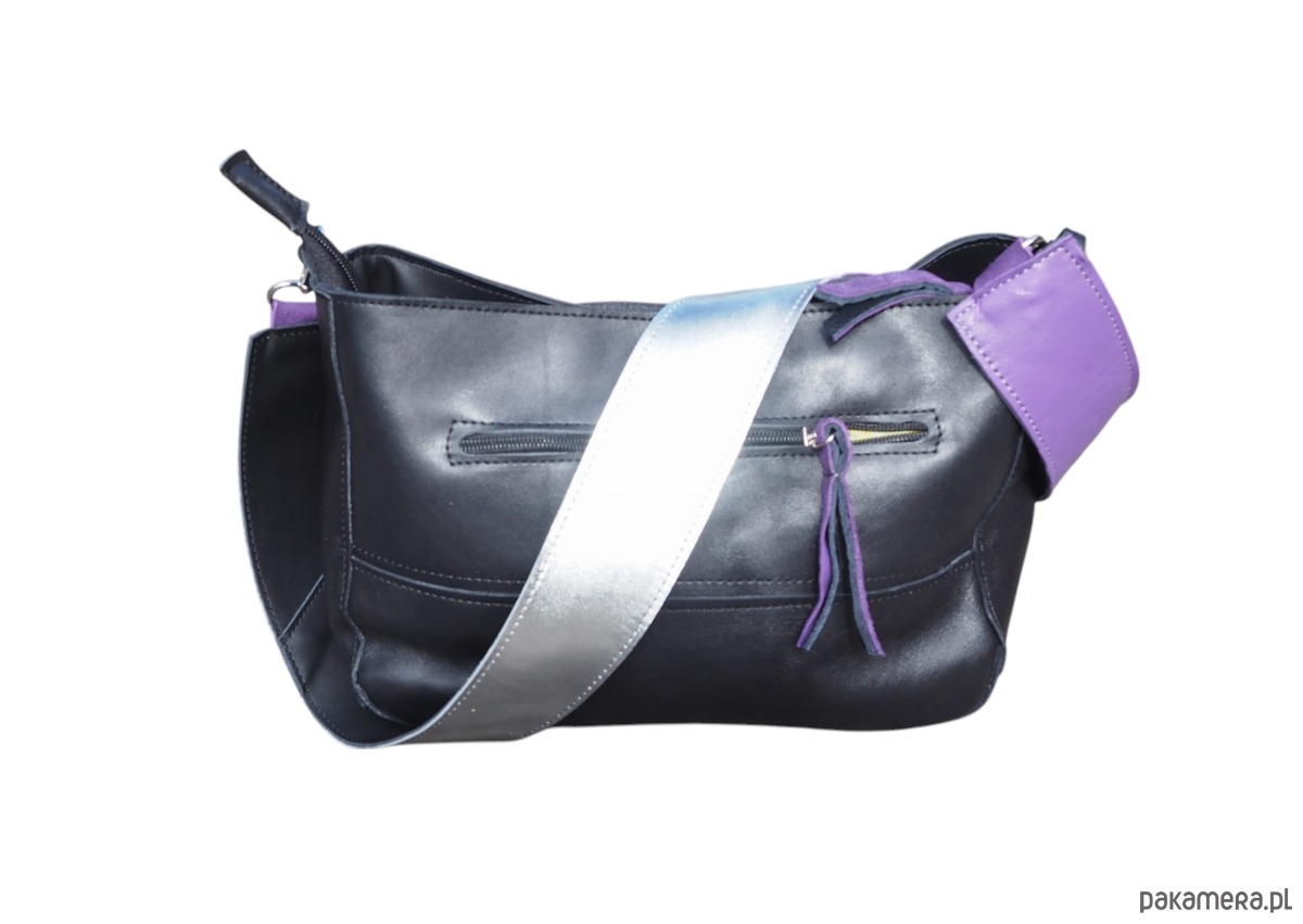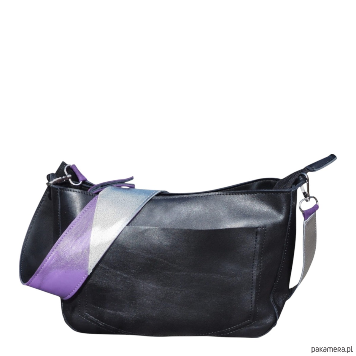 Czarna skórzana listonoszka z szerokim kolorowym paskiem