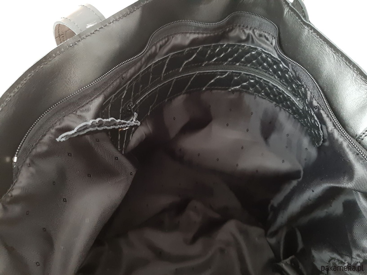 Wewnątrz podszewką. W środku kieszonka zapinana na zamek i 2 kieszonki "telefoniczne".