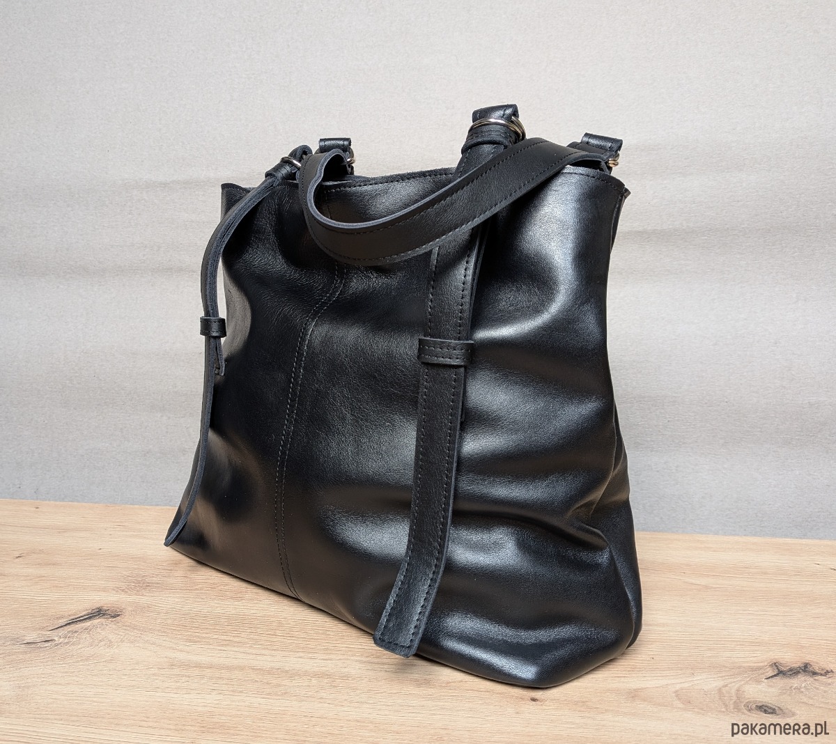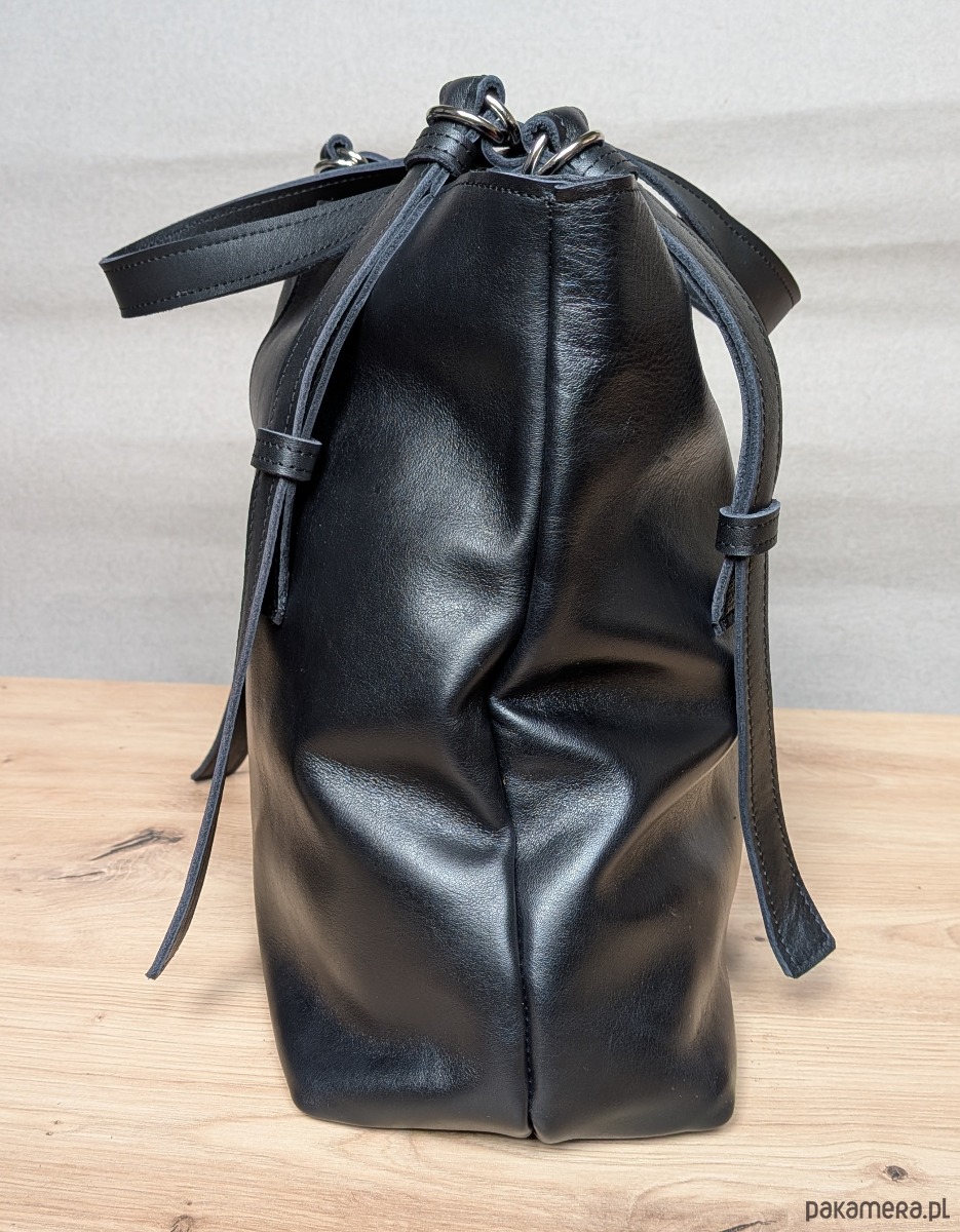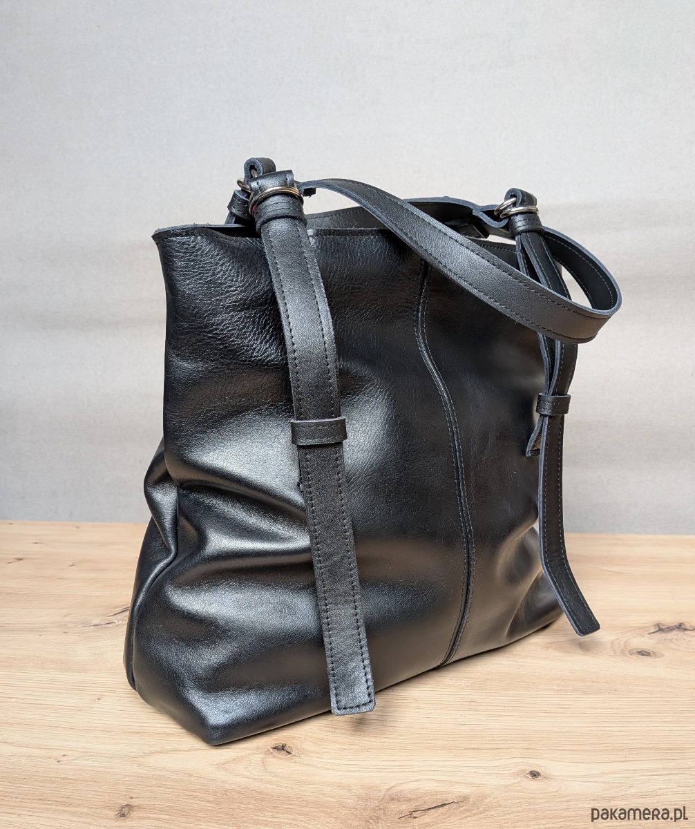 Ponadczasowa torba skórzana, która łączy elegancję z funkcjonalnością. Wykonana z naturalnej, czarnej skóry, zachowuje piękny wygląd przez lata, niezależnie od trendów.