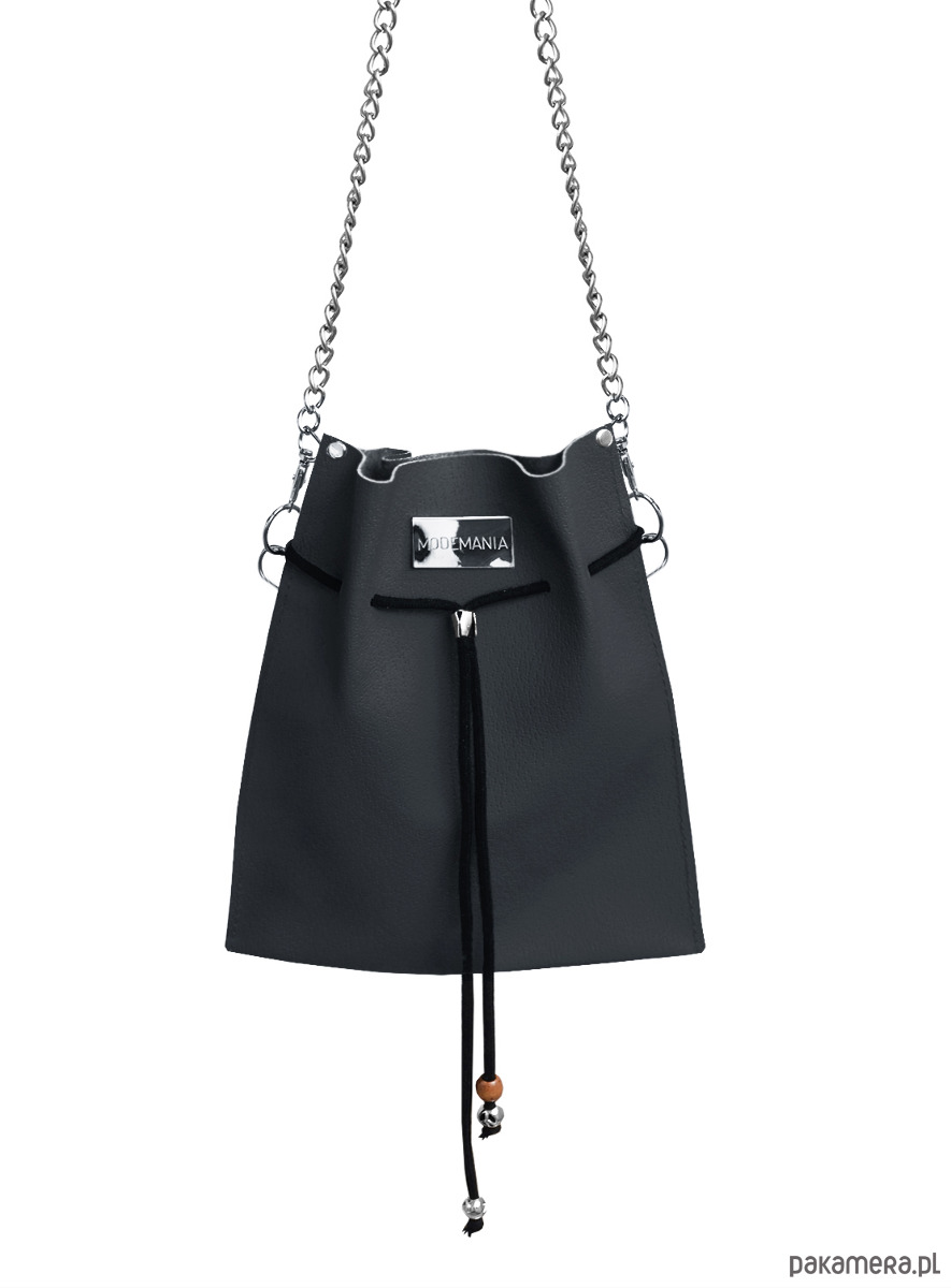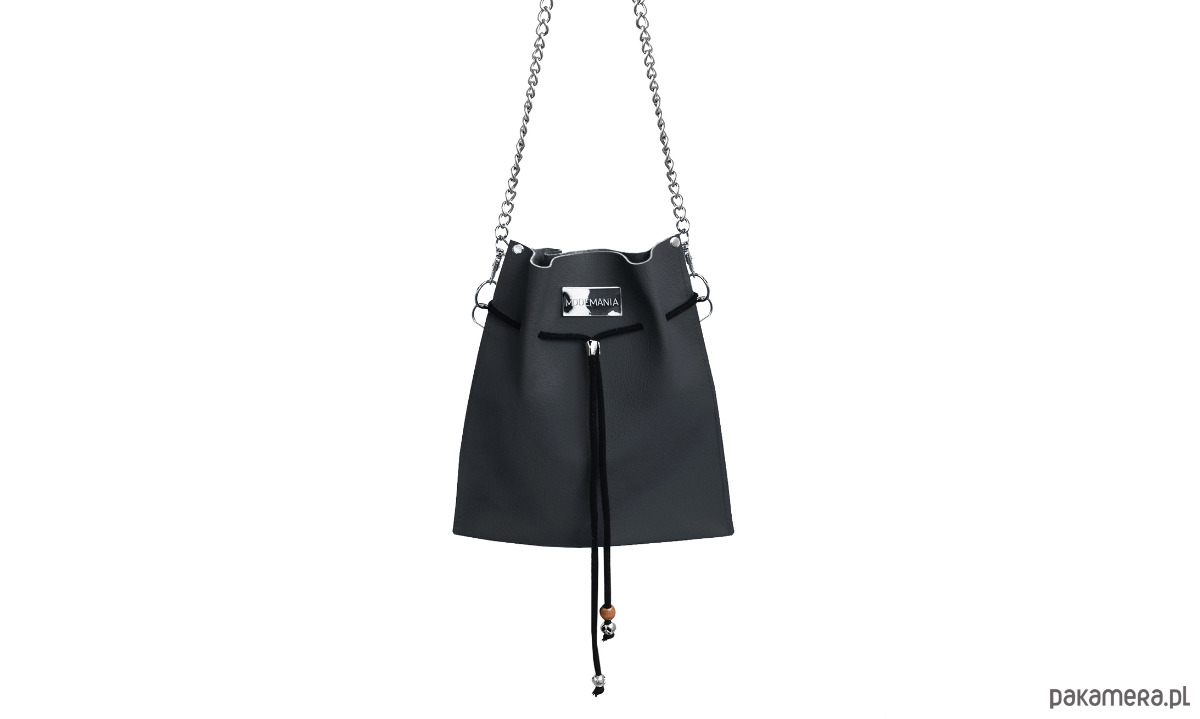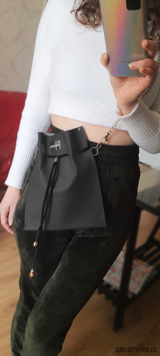 Woreczek na łańcuszku wykonany z wysokiej jakości skóry naturalnej w kolorze czarnym.