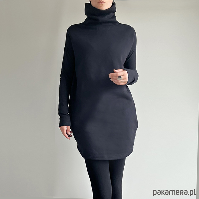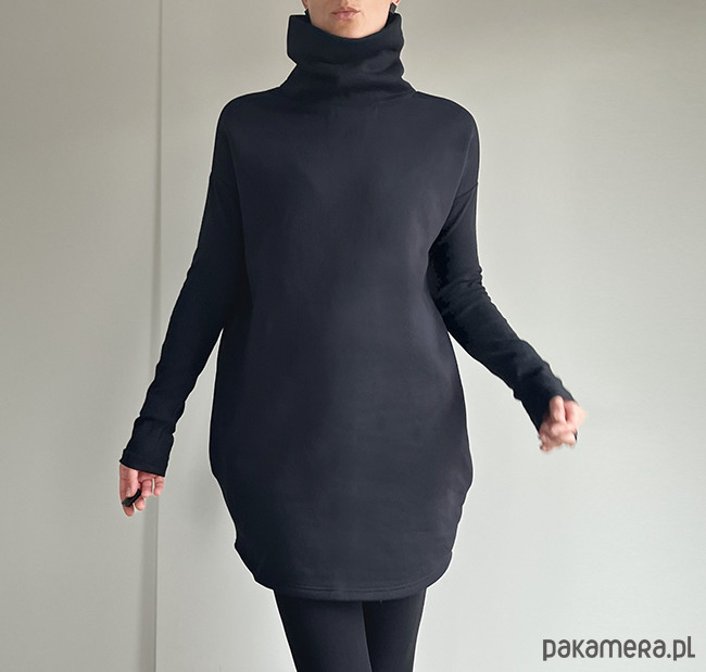Ciepła, mięciutka sukienka z grubej czarnej dresówki, z takim golfem, że my się zakochałyśmy.