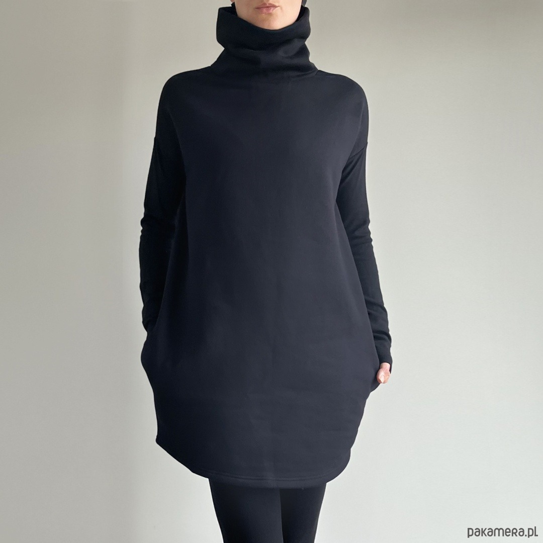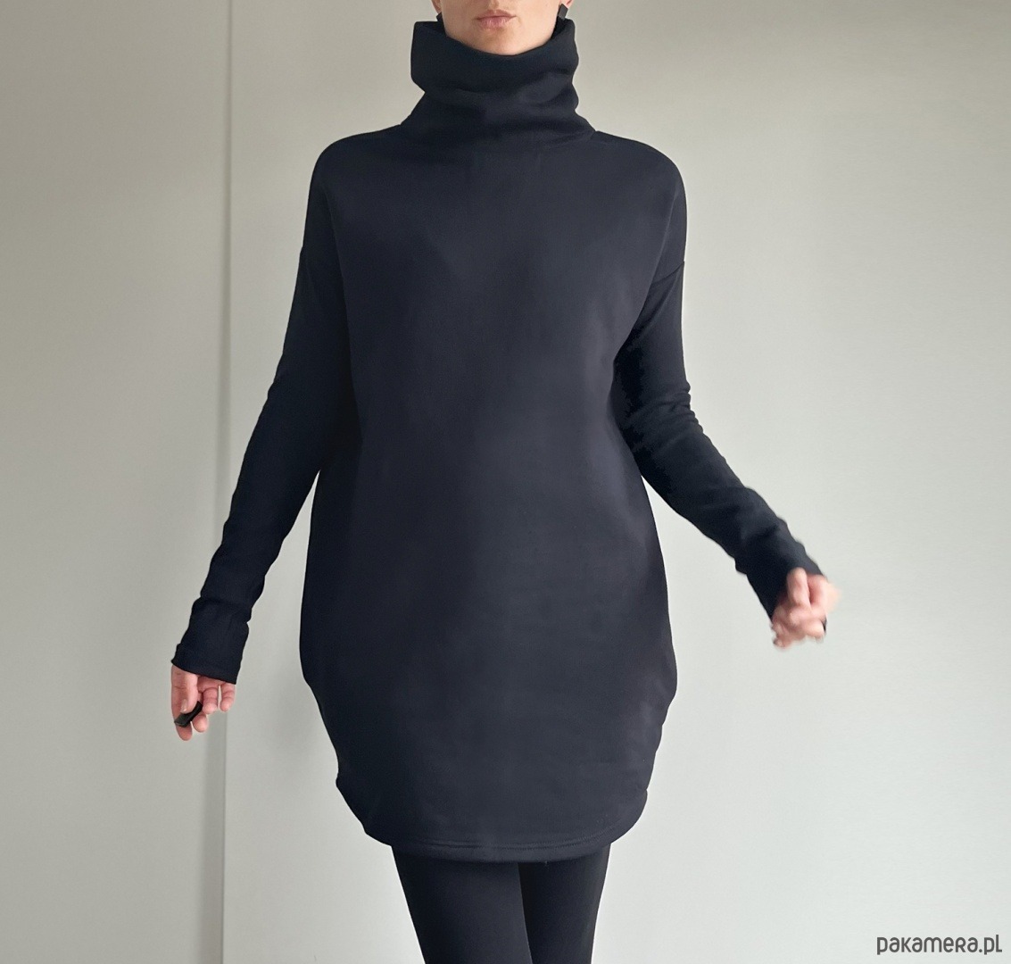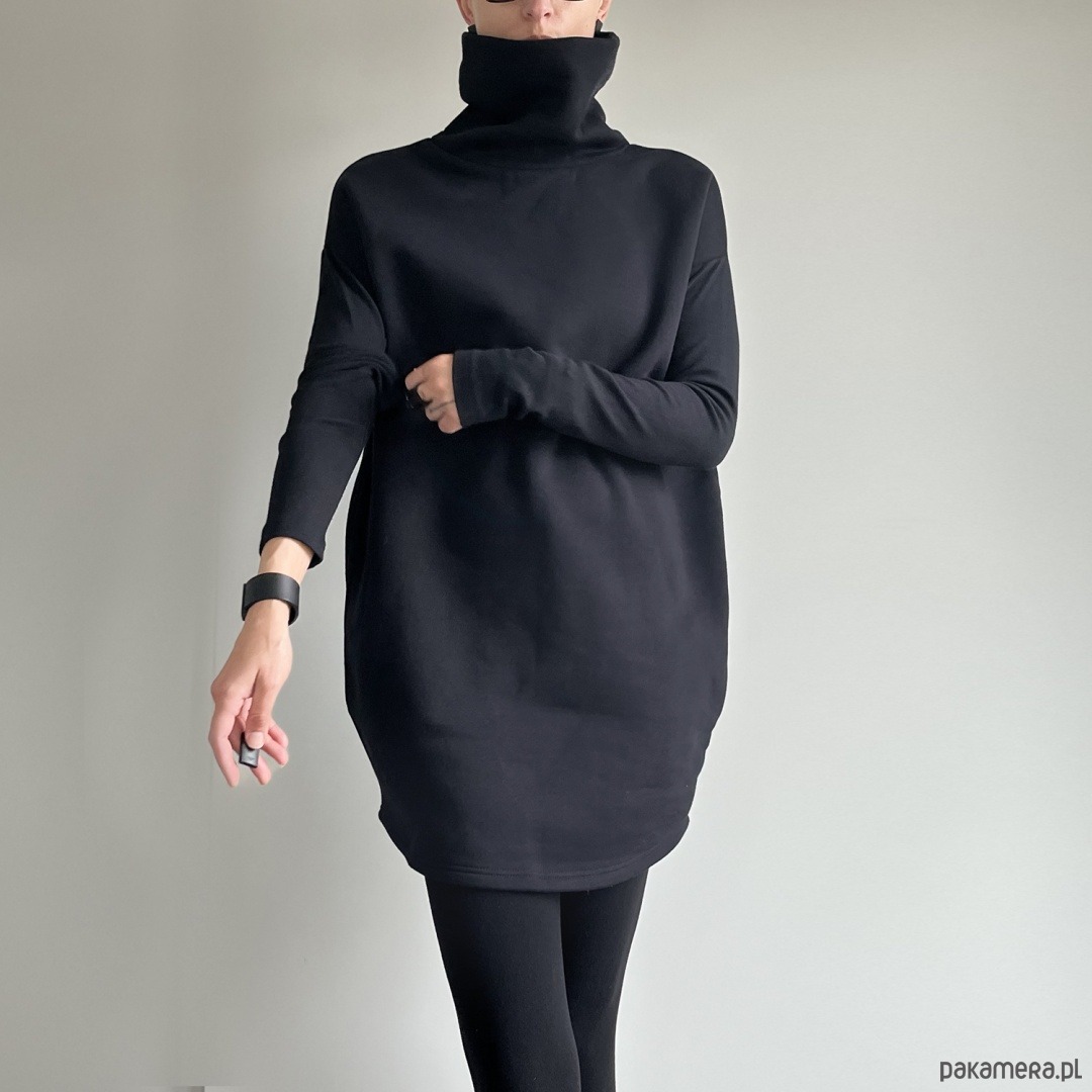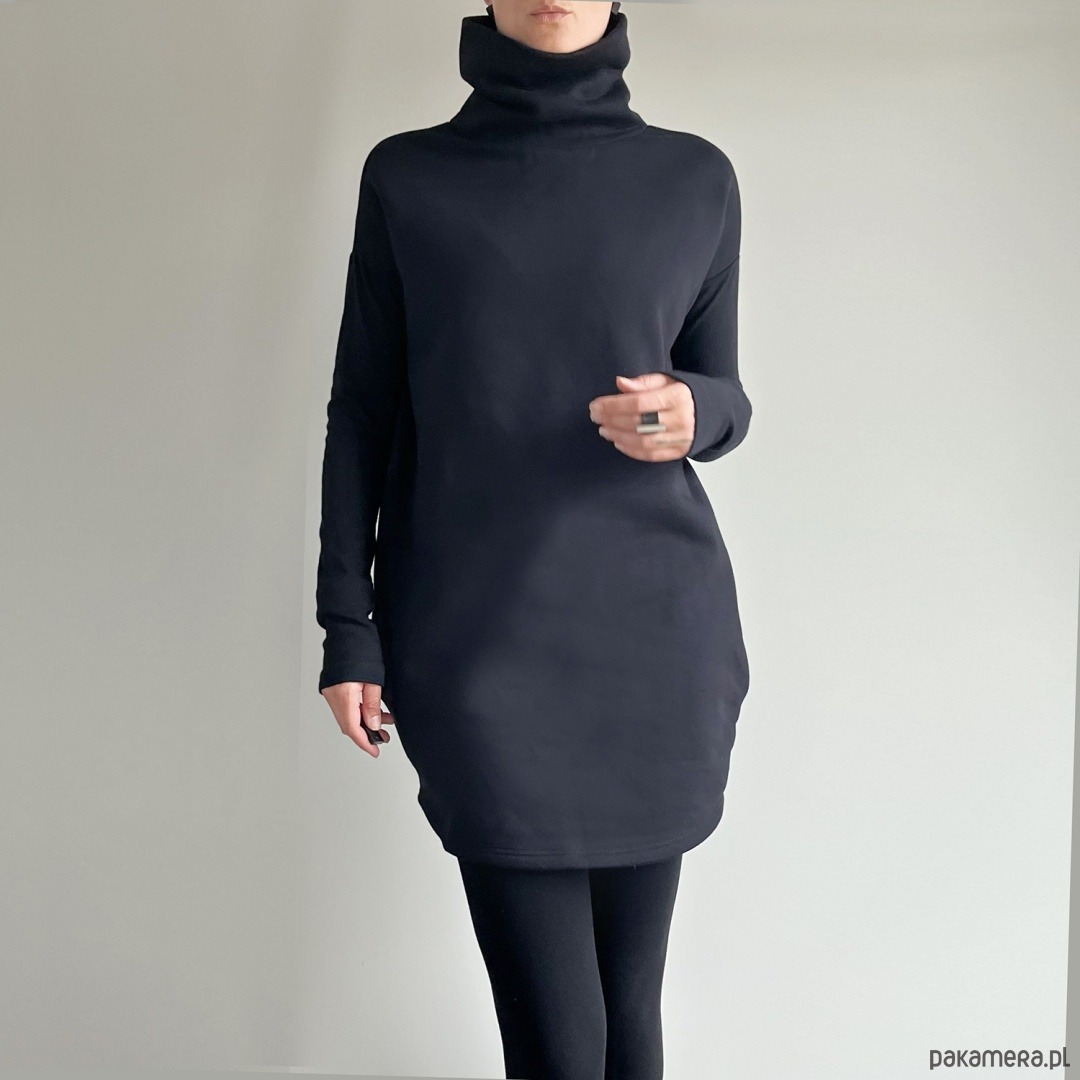 Ciepła, mięciutka sukienka z grubej czarnej dresówki, z takim golfem, że my się zakochałyśmy.