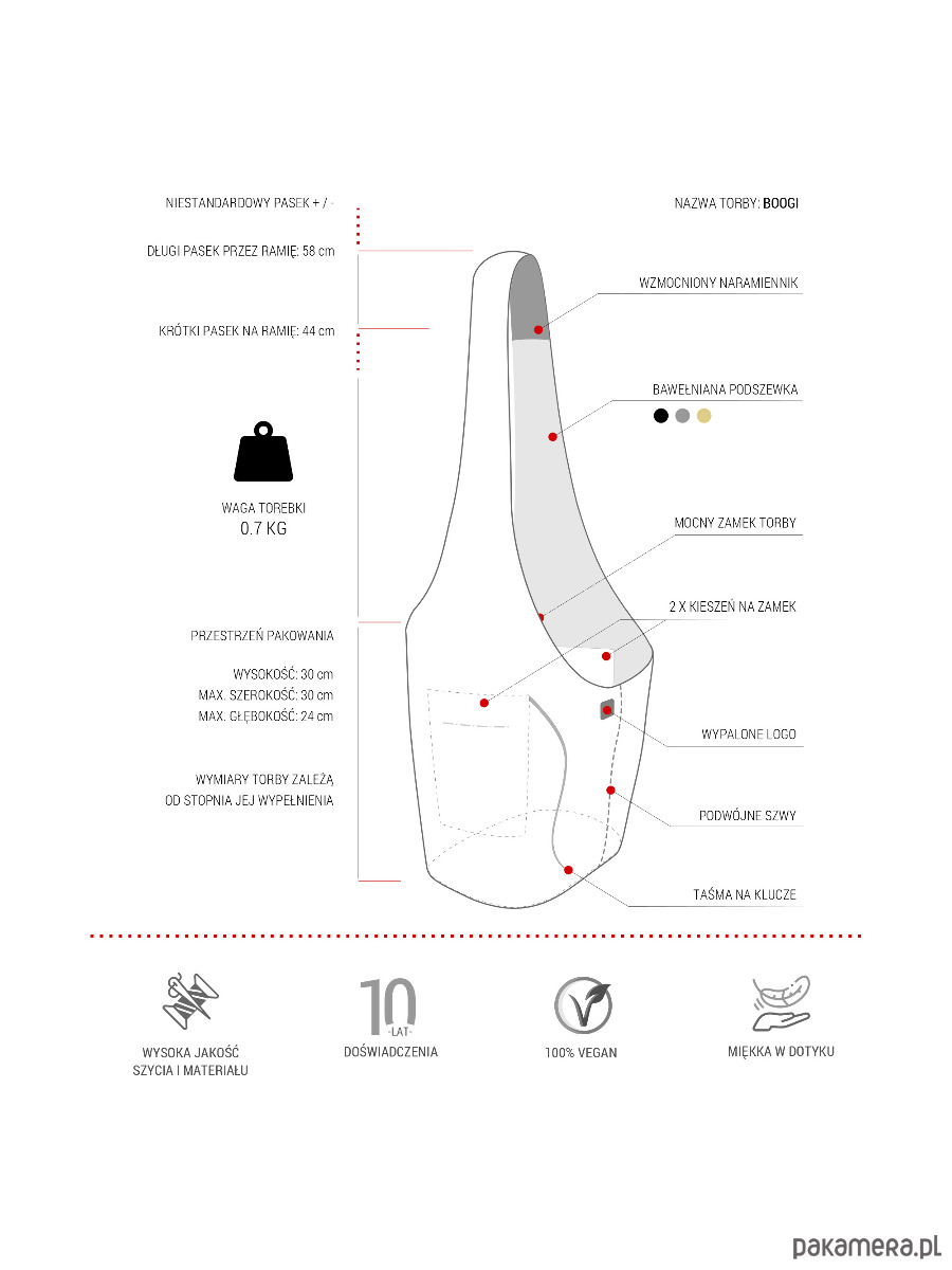 Możesz zwrócić zakupiony produkt bez podania przyczyny w przeciągu 14 dni od daty jego otrzymania. Wystarczy, że wyślesz wiadomość e-mail na adres Pakamery. Pamiętaj, że produkt musi być w stanie nienaruszonym i nie może nosić śladów używania. Zwracany towar przesyłasz na własny koszt wraz z wypełnionym formularzem o odstąpieniu od umowy (do pobrania po zalogowaniu). Produkty wykonane na indywidualne zamówienie nie podlegają zwrotowi. Pełna procedura zwrotu (tutaj)