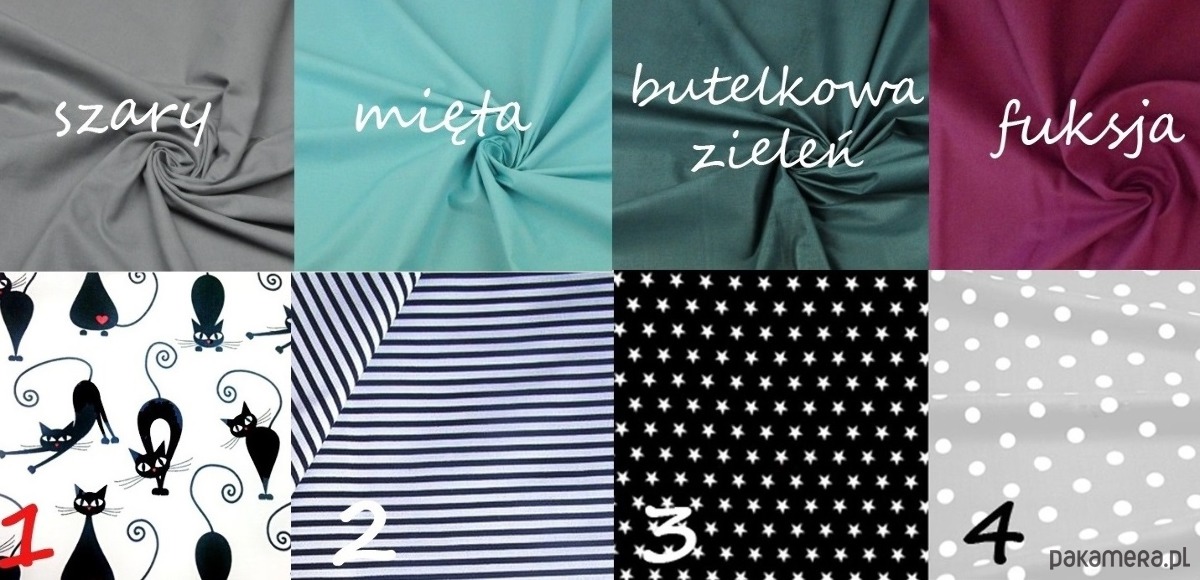 UWAGA! Istnieje możliwość dopasowania podszewki (ostatnie zdjęcie). Przy składaniu zamówienia proszę o wpisanie numeru wybranej podszewki. W przypadku braku informacji szyjemy torebkę z podszewką szarą w kropki lub czarną w gwiazdki.