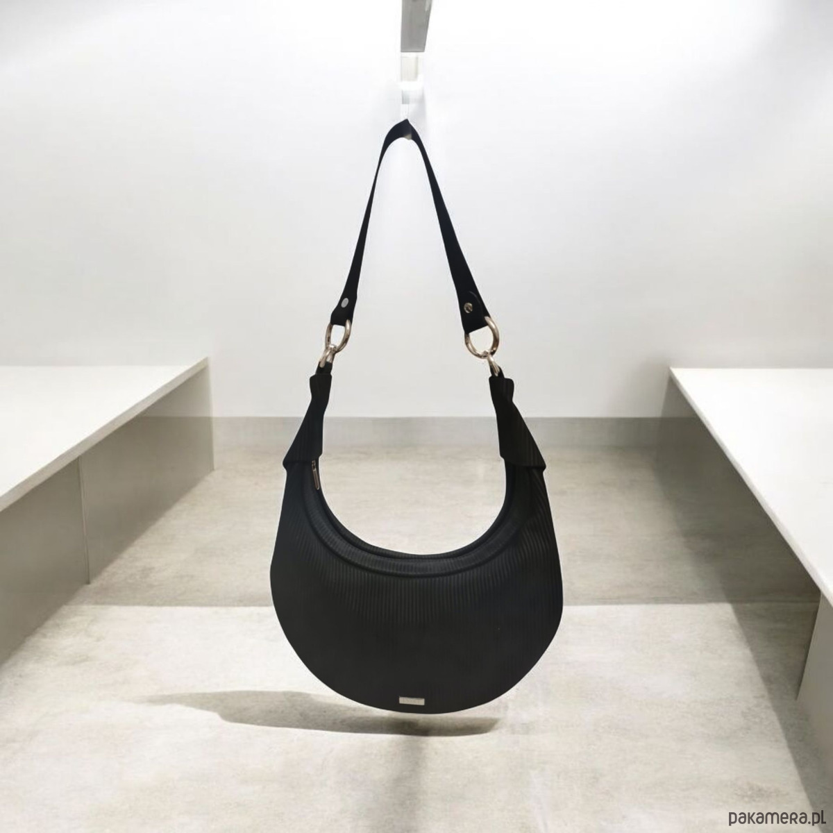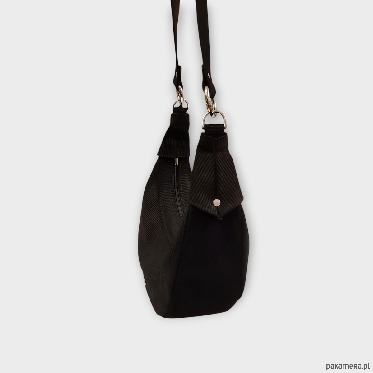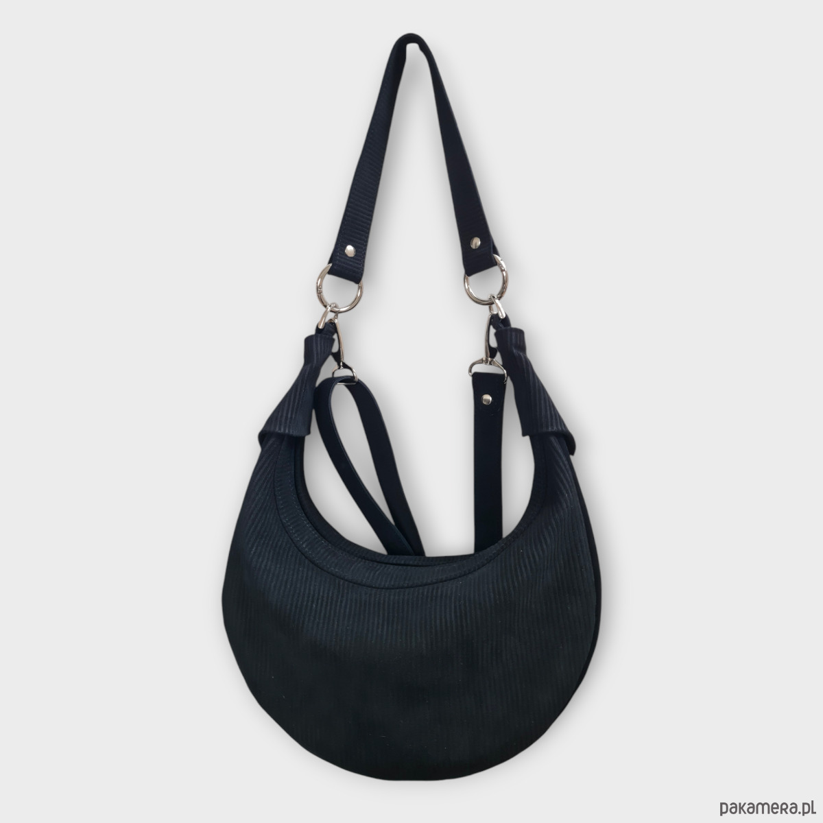 Torebka U'CARMEN typu okrągłej bagietki, czarny zamsz o fakturze sztruksu.