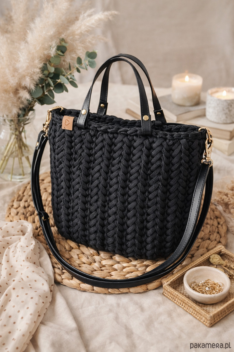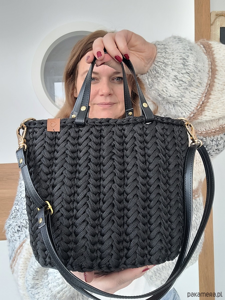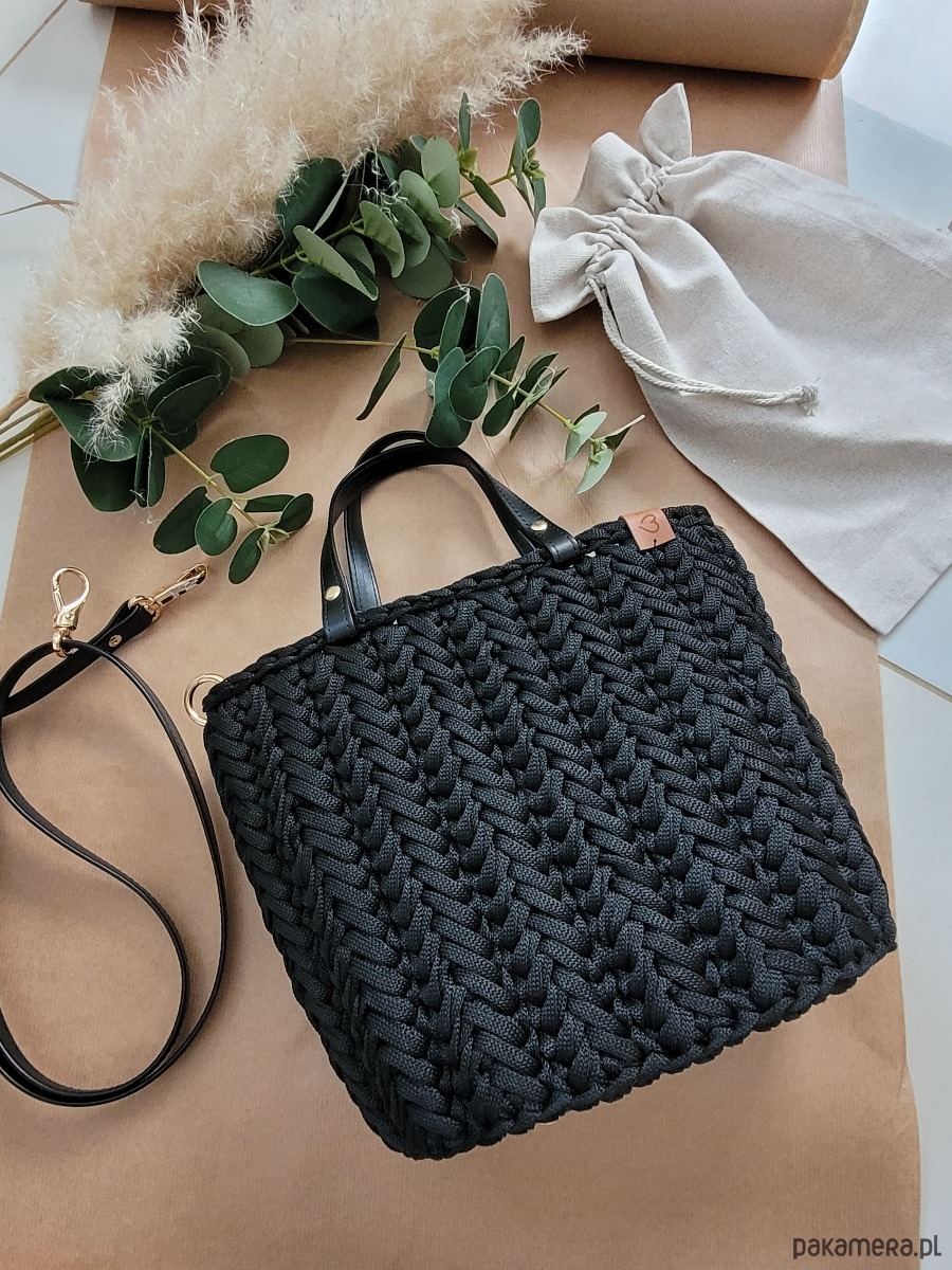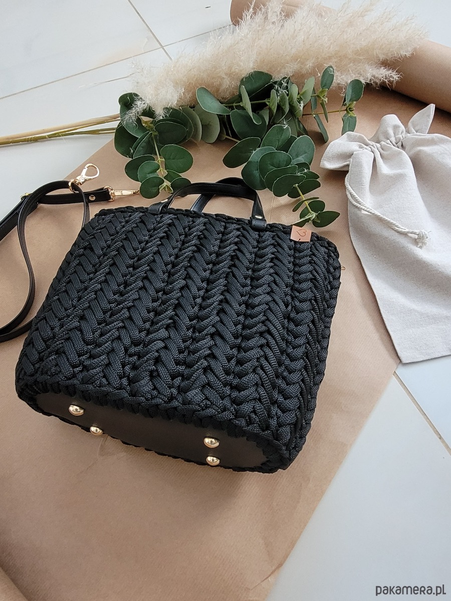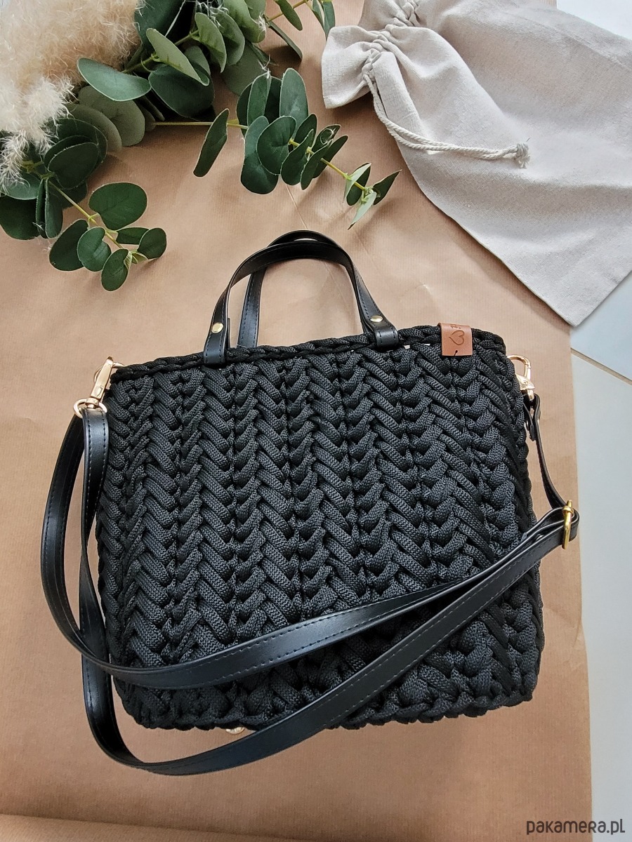 Czarna torebka plecione Handmade - elegancka torebka damska do pracy