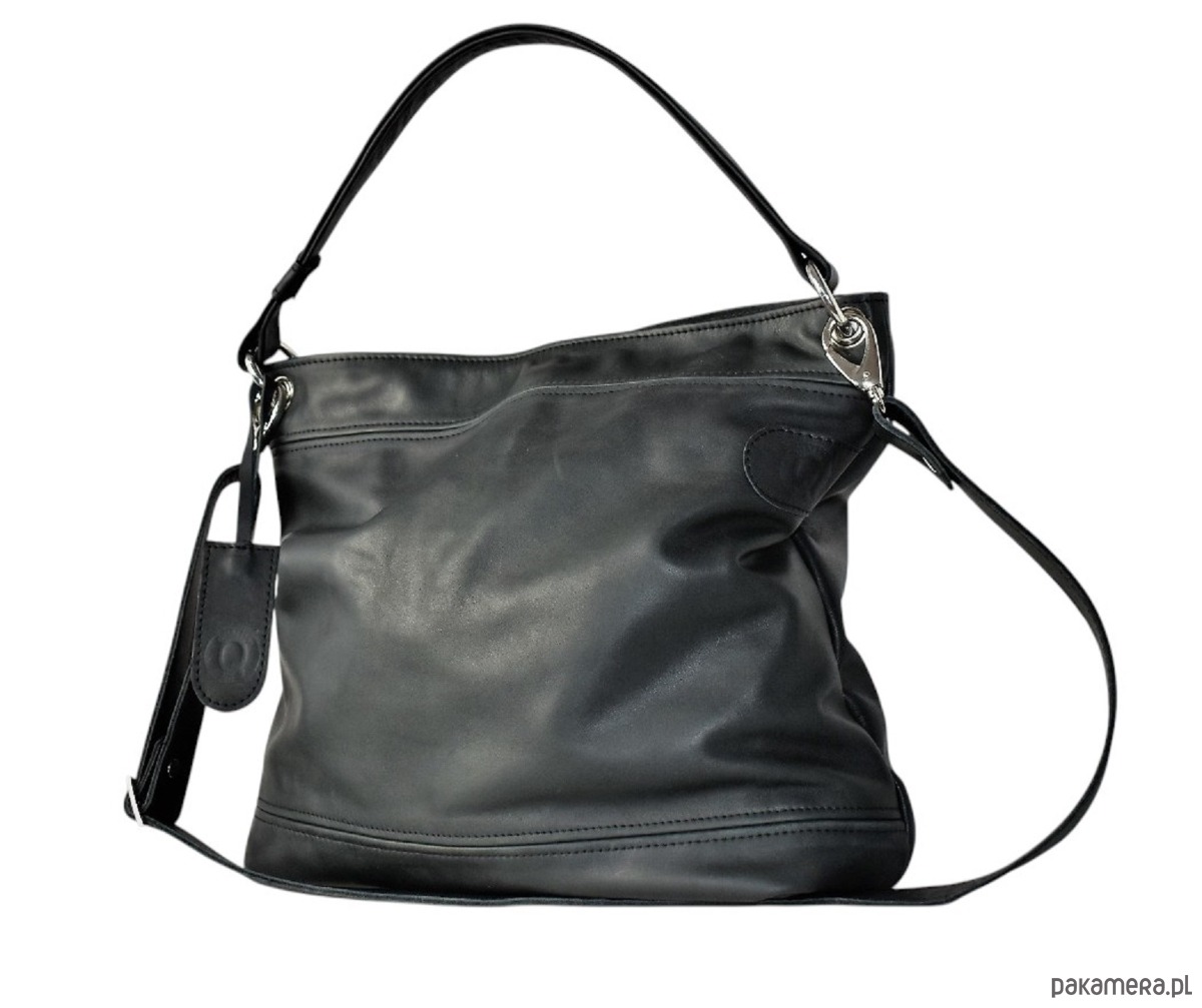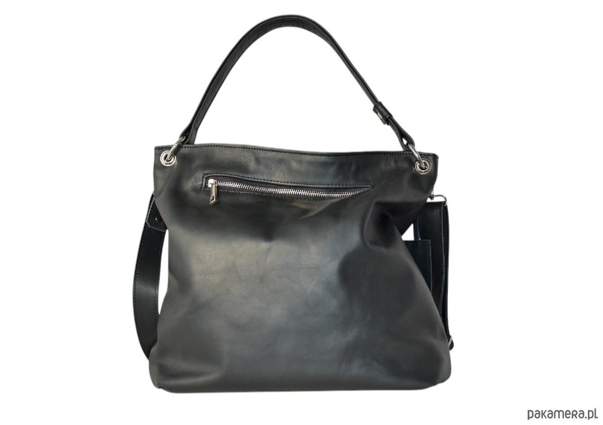 Ta czarna skórzana torebka miejska to połączenie klasyki i nowoczesności – świetnie uzupełni każdą garderobę.