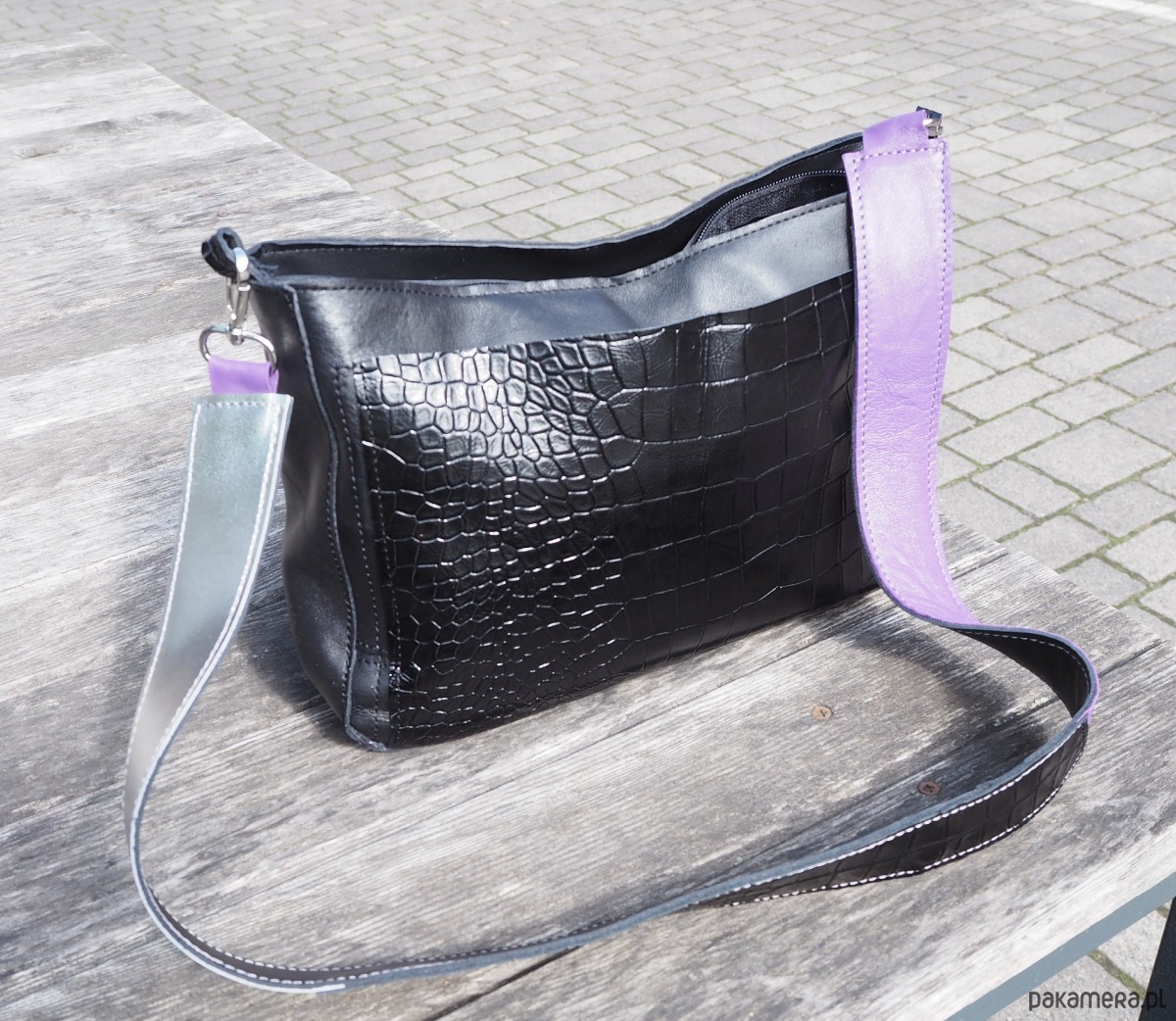 Kolory na pasku to fiolet czarny i srebro.
