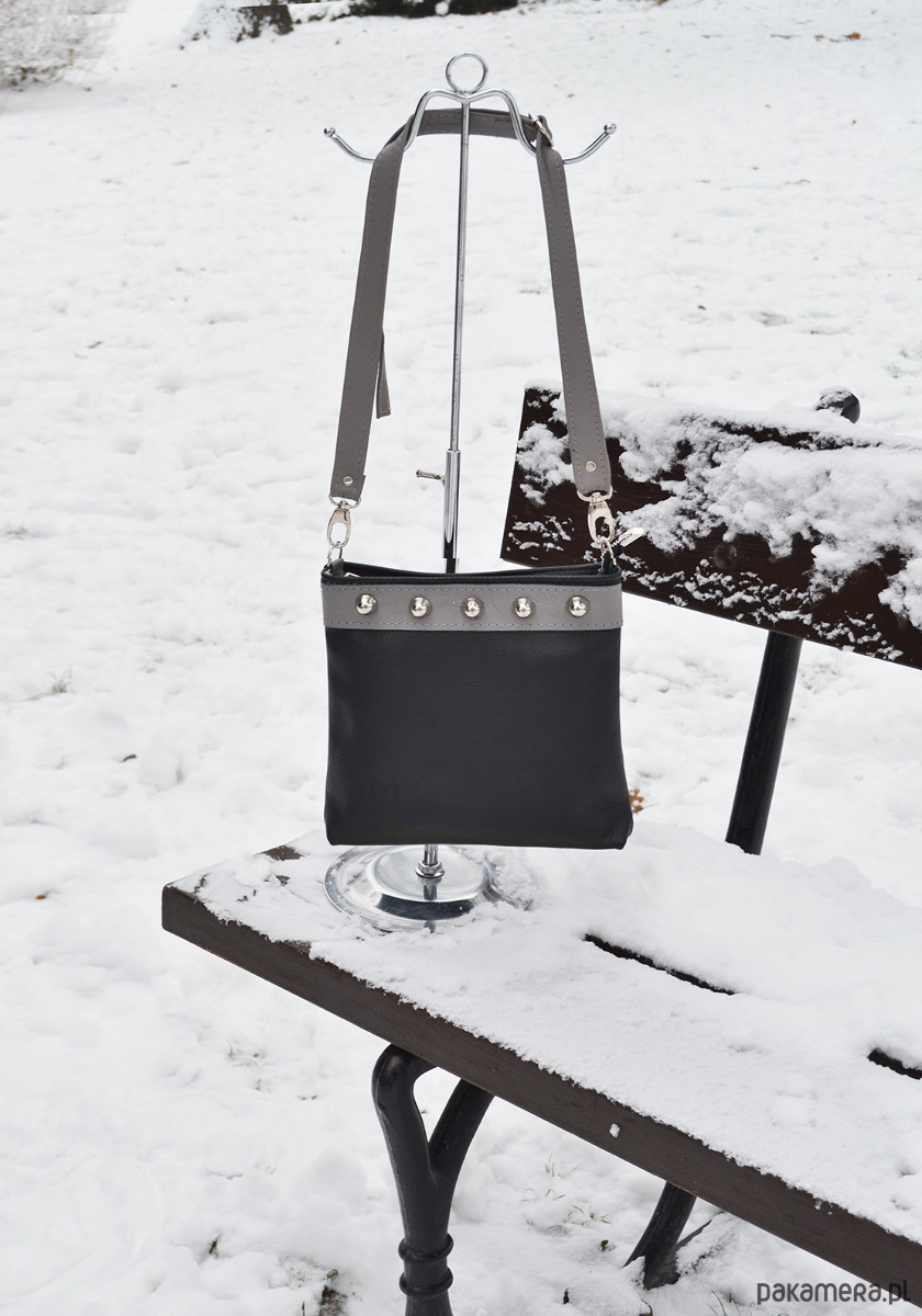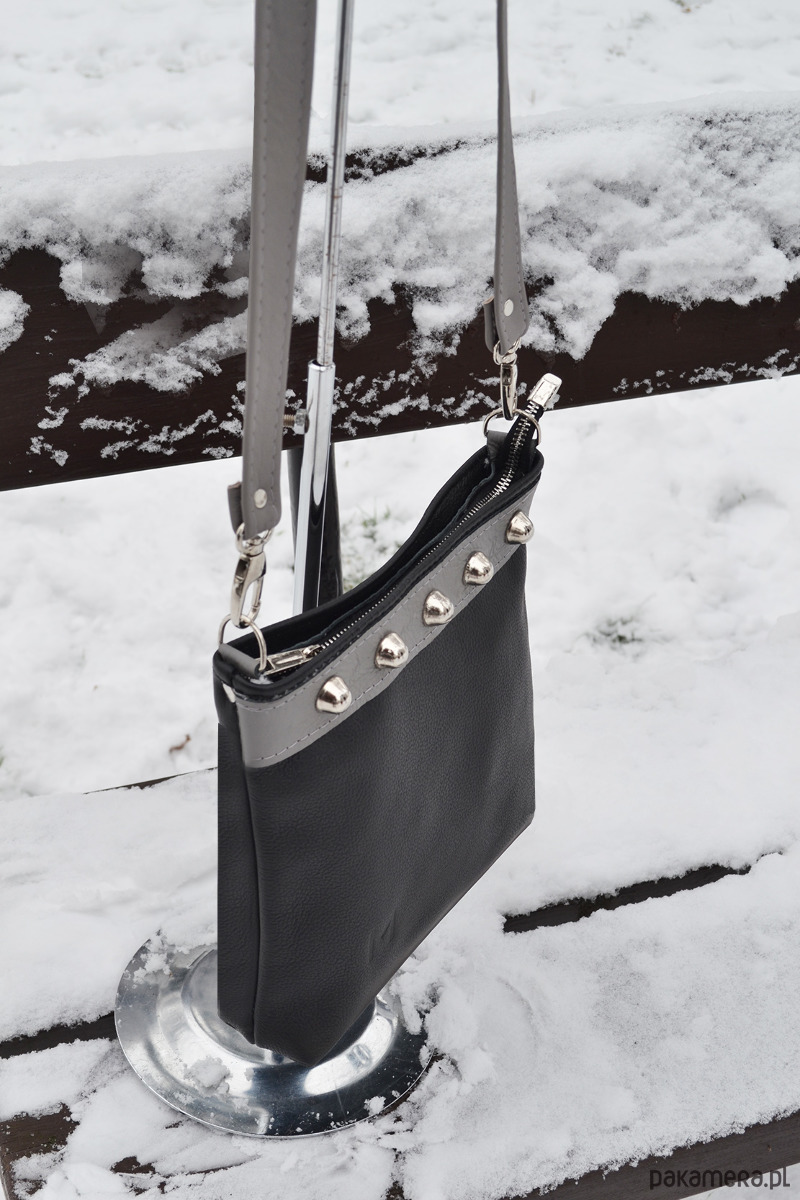 Zapięcie na suwak, długi odpinany pasek na ramię wraz z regulacją długości.