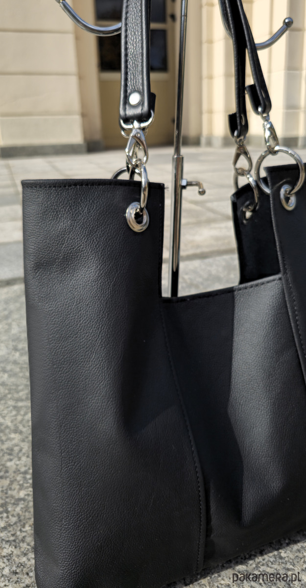 Torebka z miękkiej czarnej skóry o strukturze "groszek".