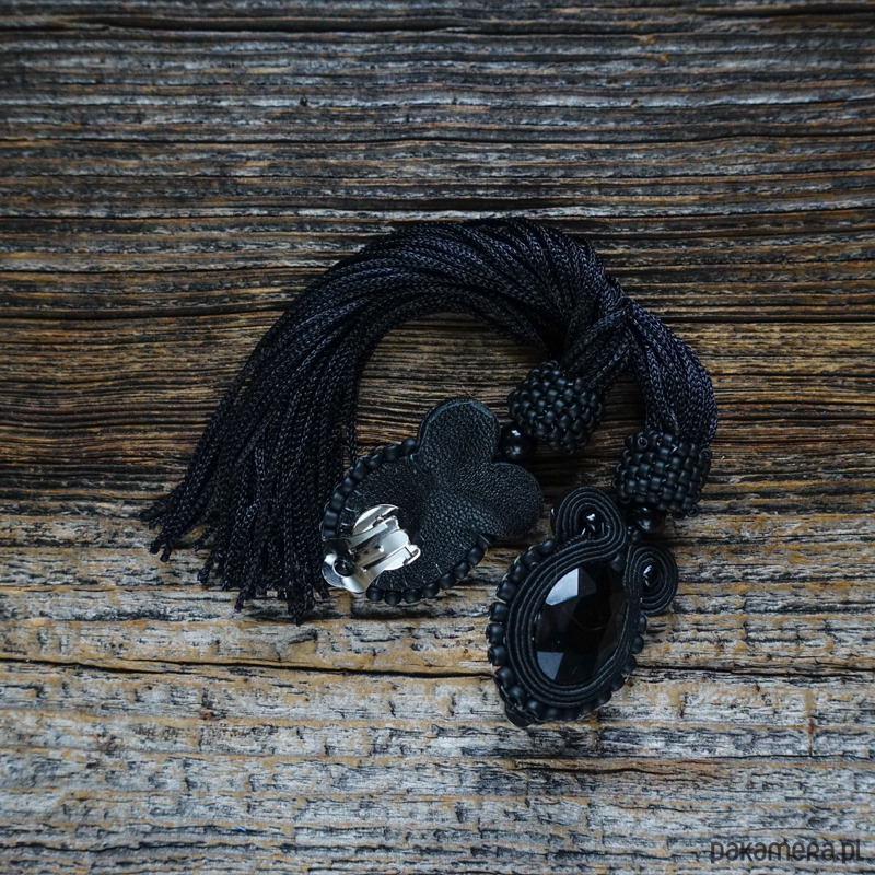 Czarne klipsy soutache z frędzlami- długie