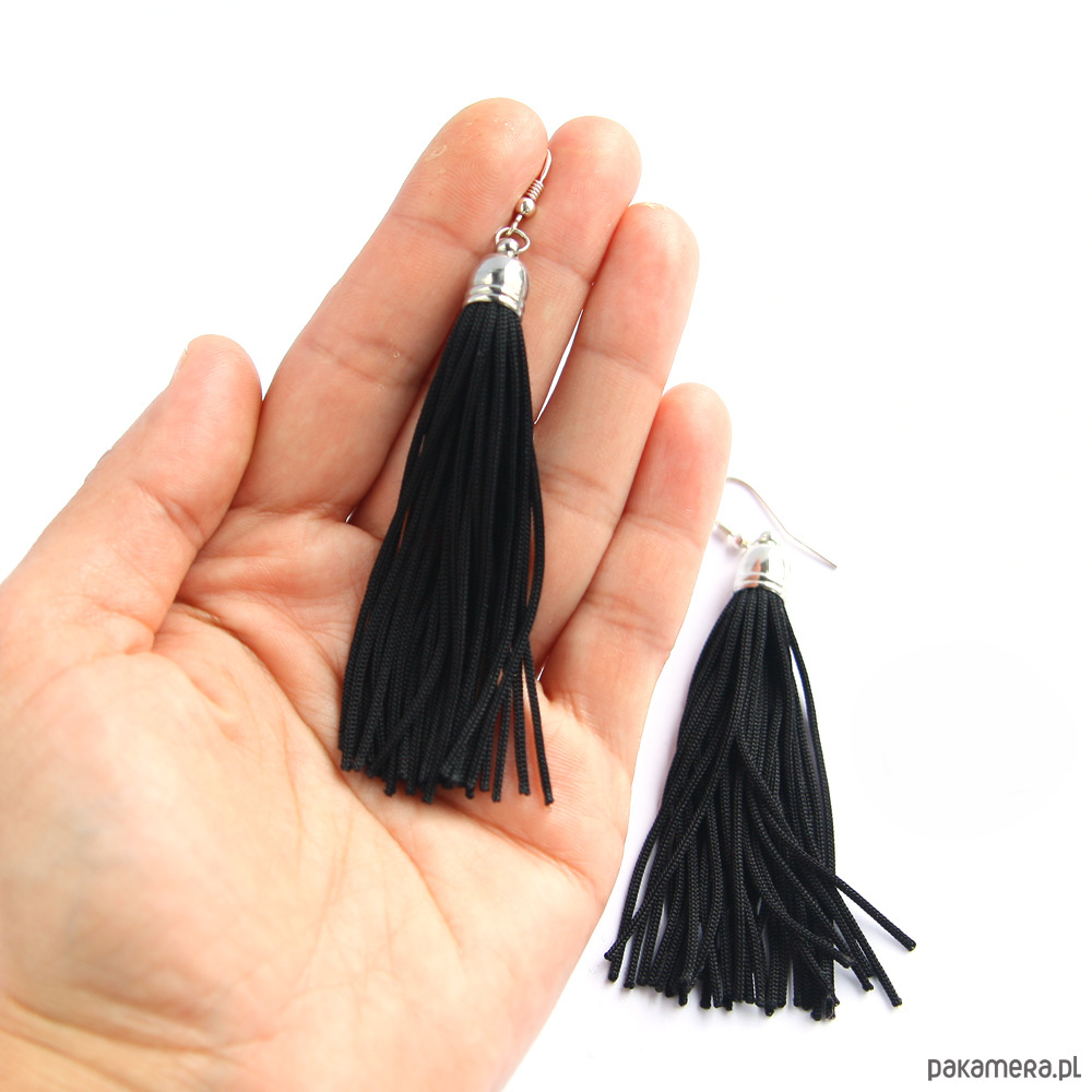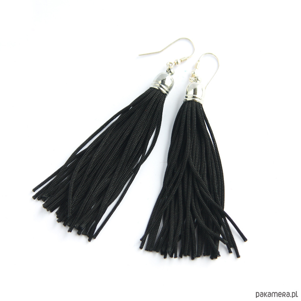 Czarne kolczyki chwosty frędzle