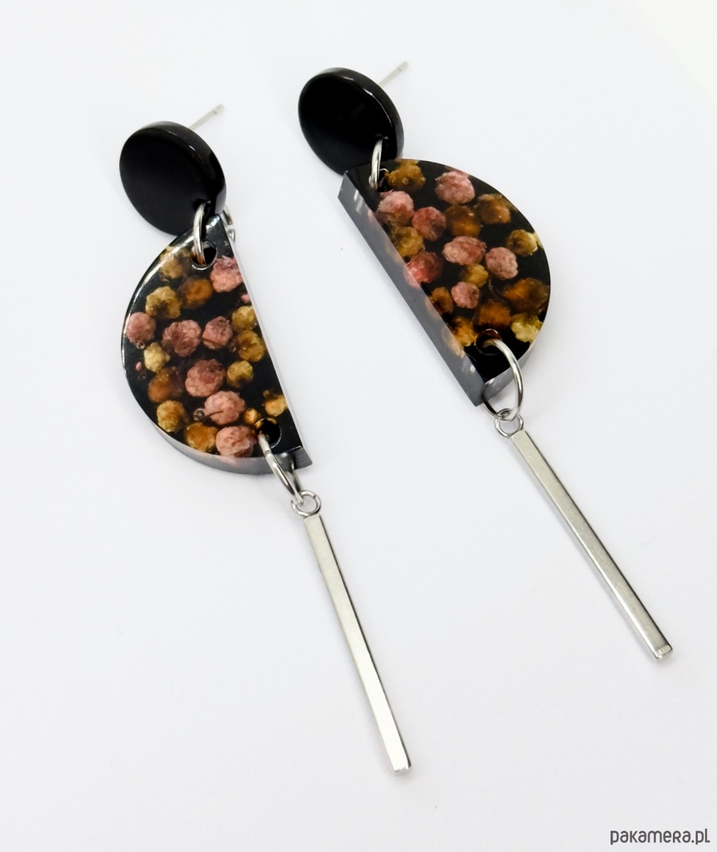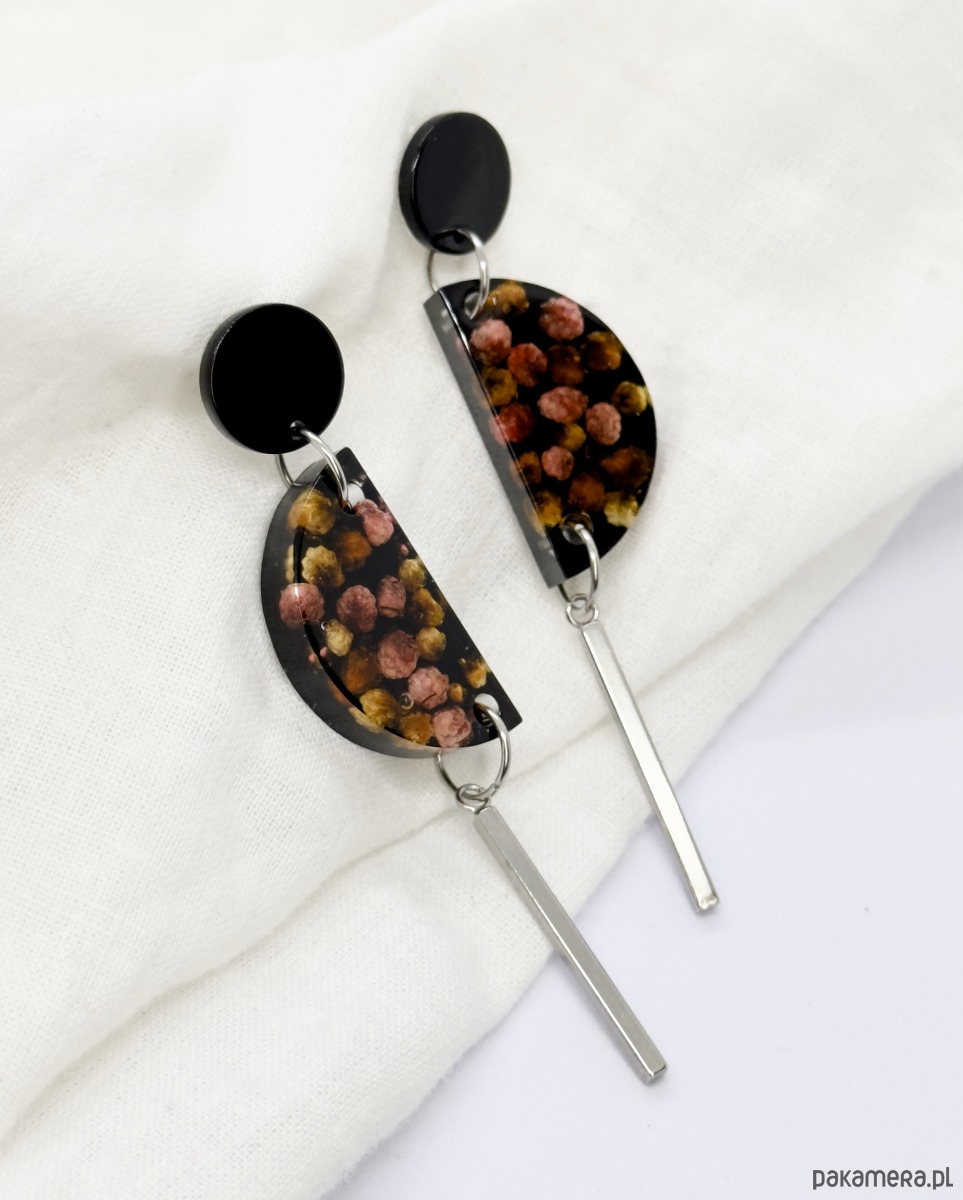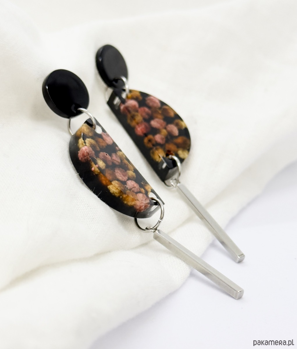Czarne kolczyki, kolczyki z czerwonymi i żółtymi kwiatami