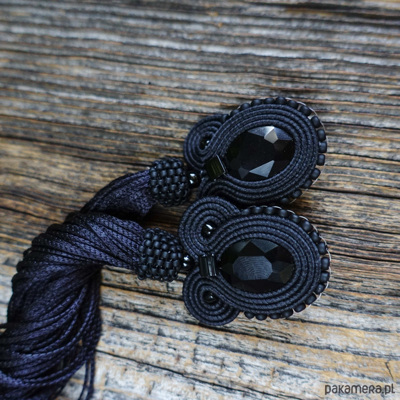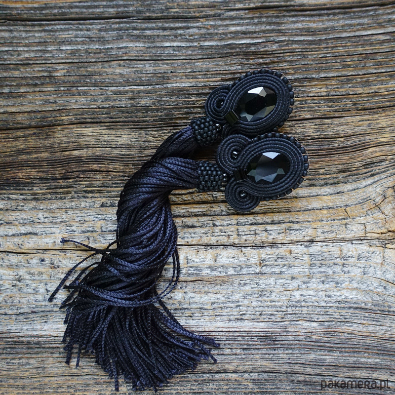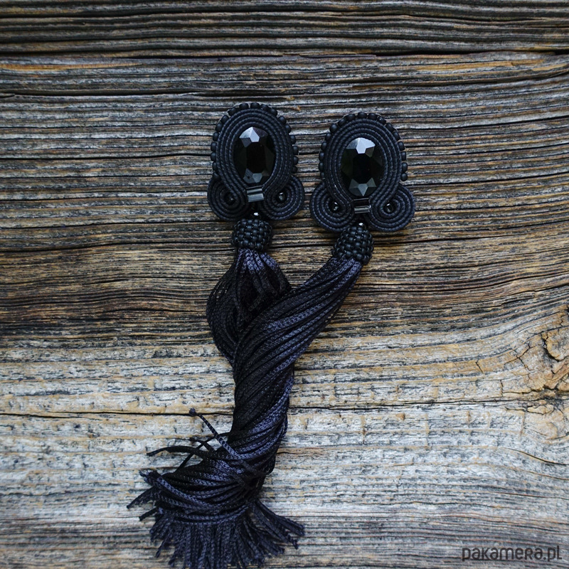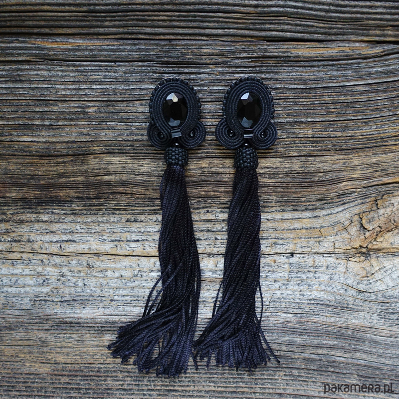 Czarne kolczyki soutache z frędzlami- długie