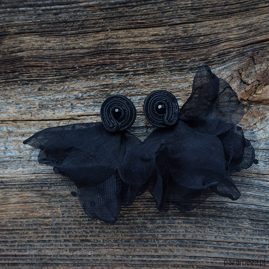 Wyraziste, pełne charakteru i stworzone z myślą o tych, które lubią robić wejście. Ręcznie wykonane metodą haftu soutache – lekkie, ale o wielkiej osobowości. Kwiaty z delikatnego szyfonu dodają im teatralnej lekkości, a czarna kolorystyka podkręca efekt „wow”.