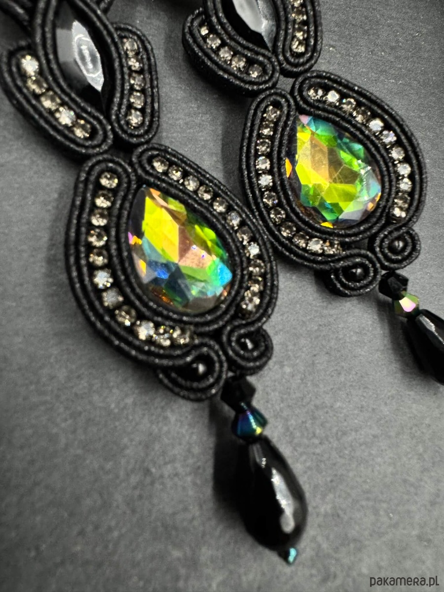 Czarne kolczyki sutasz z opalizującymi kryształami