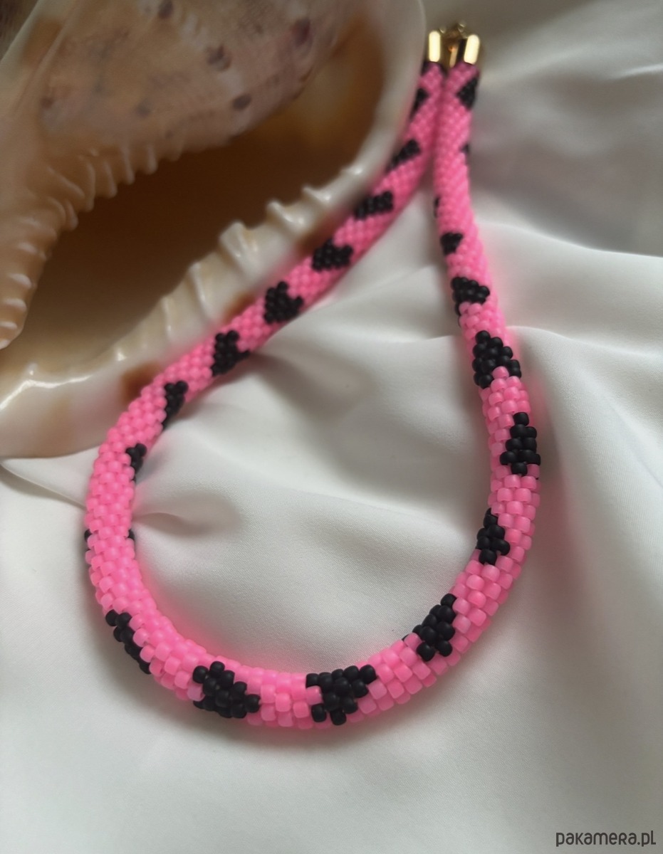 Wykonany z około 1500 sztuk japońskich koralików Toho. Zapięcie ze stali szlachetniej. Długość około 40 cm