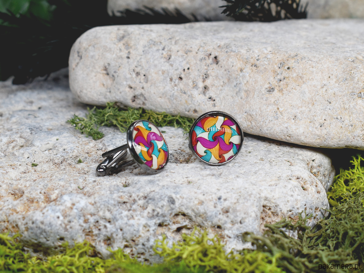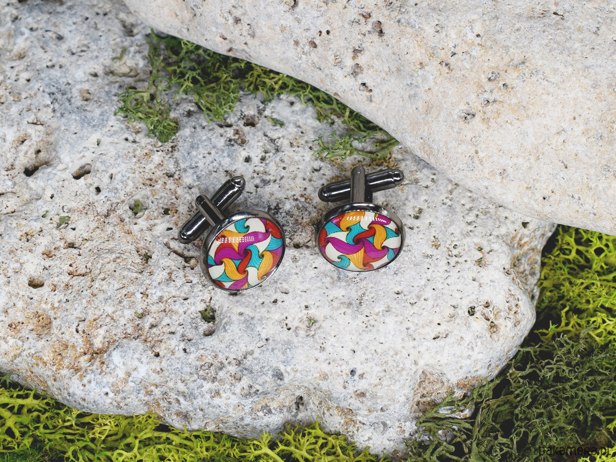 Czarne spinki do mankietów koszuli z oczkiem / kolorowe fale