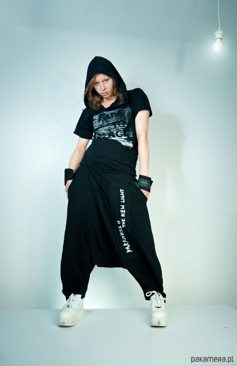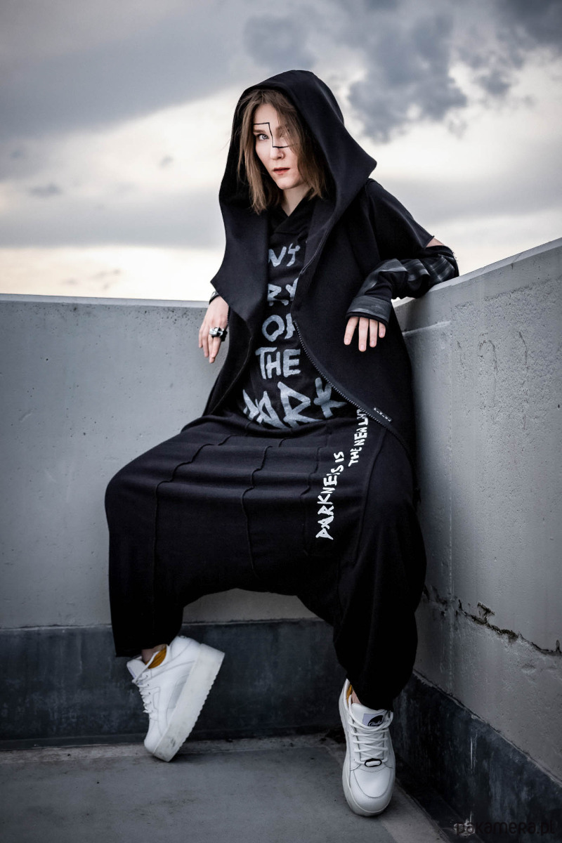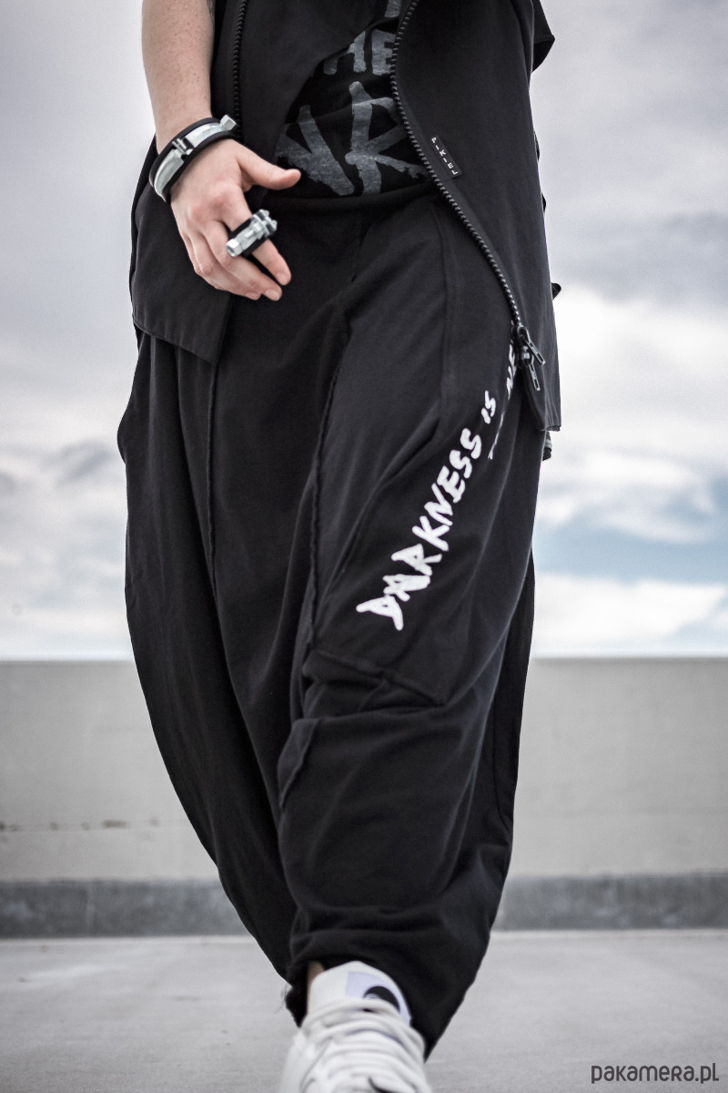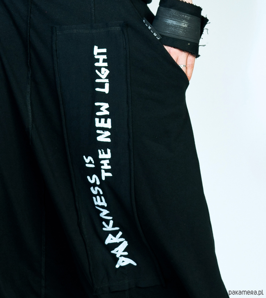 Otulają one komfortowym mrokiem z ręcznie wykonanym nadrukiem „darkness is the new light” i równocześnie zapewniają dużą swobodę ruchów, oraz nieskończony luz!