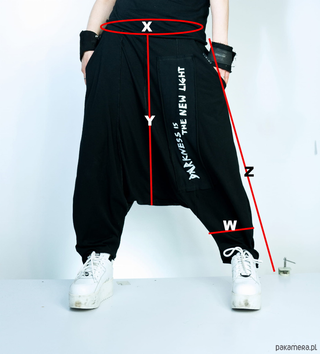 obwód spodni na wysokości paska –oznaczony na zdjęciu jako „X”