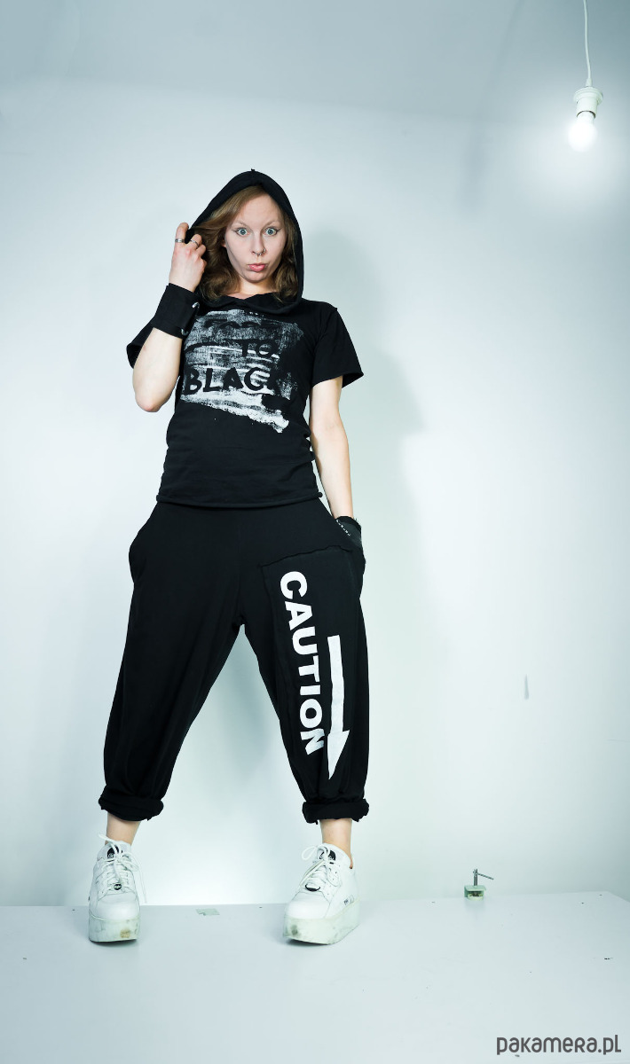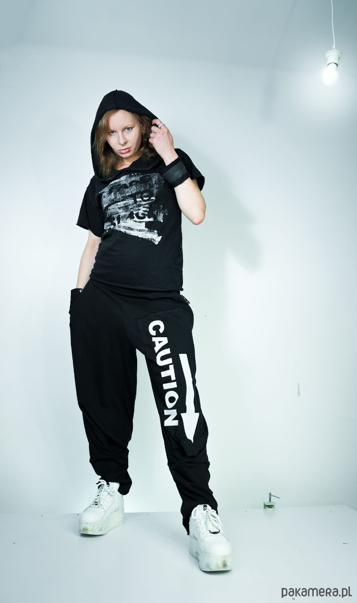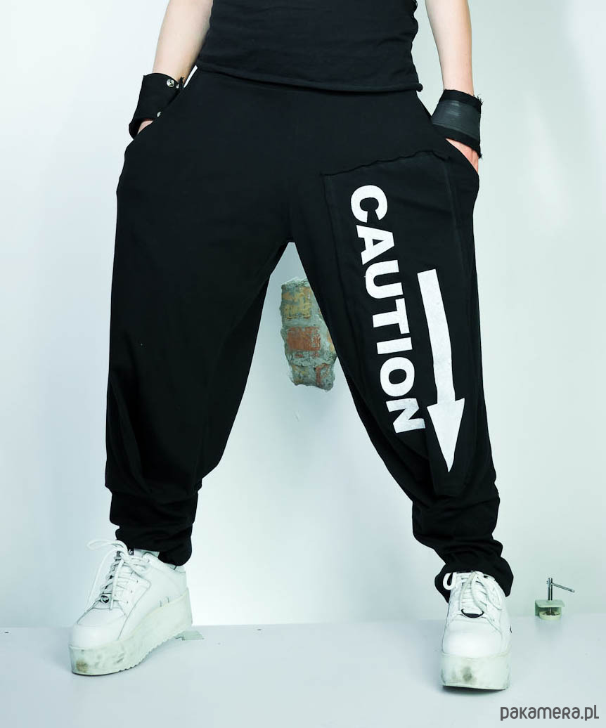Czarne wygodne spodnie unisex CAUTION!