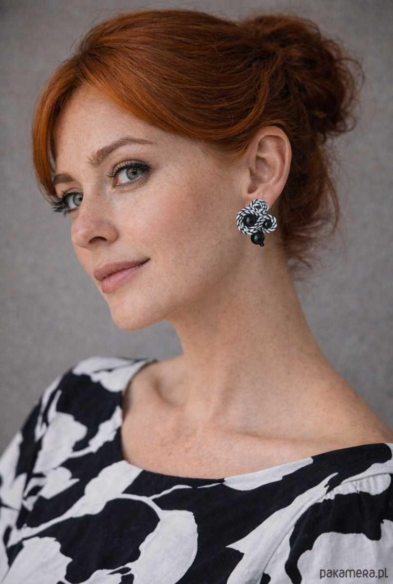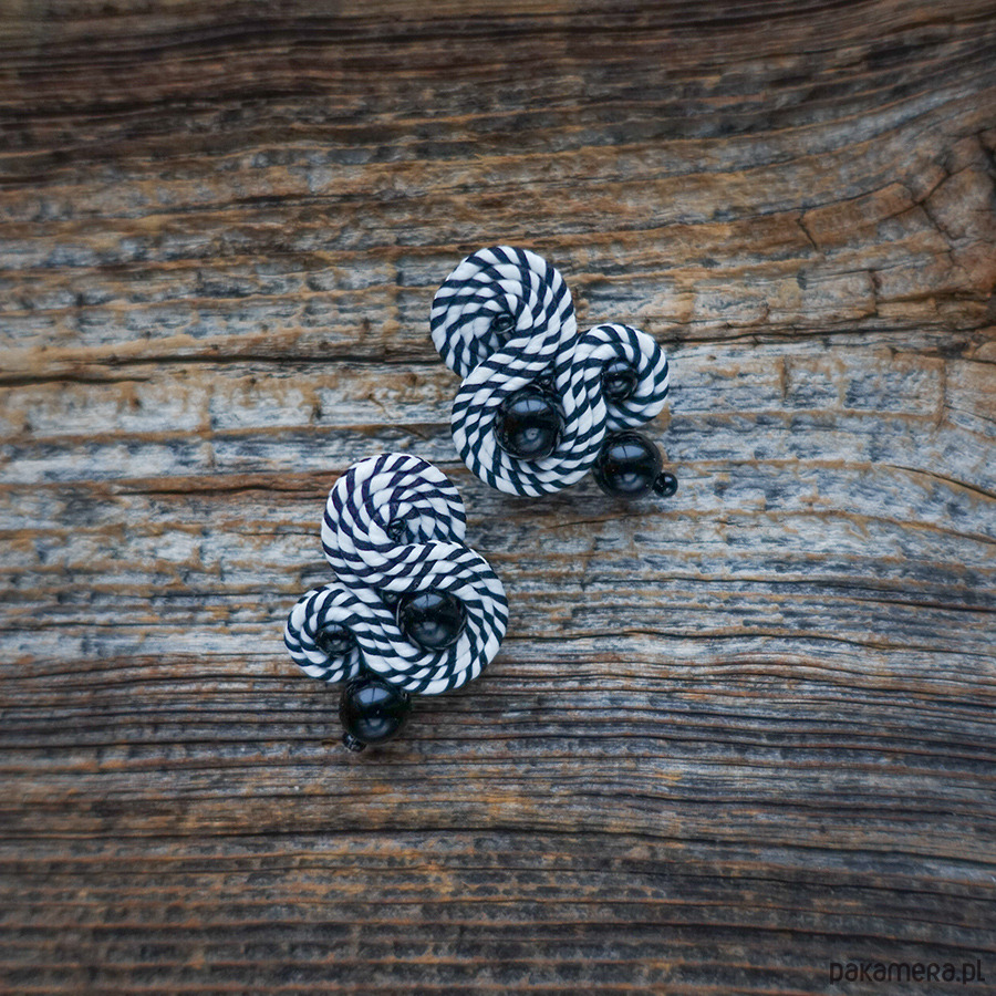 Czarno białe kolczyki sutasz