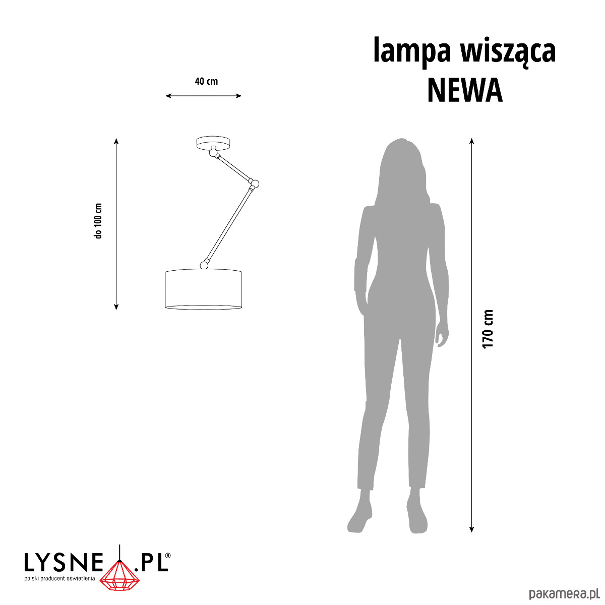 Wymiary lampy: wysokość - 100 cm , szerokość - 40 cm (zarówno wysokość jak i szerokość lampy można regulować)