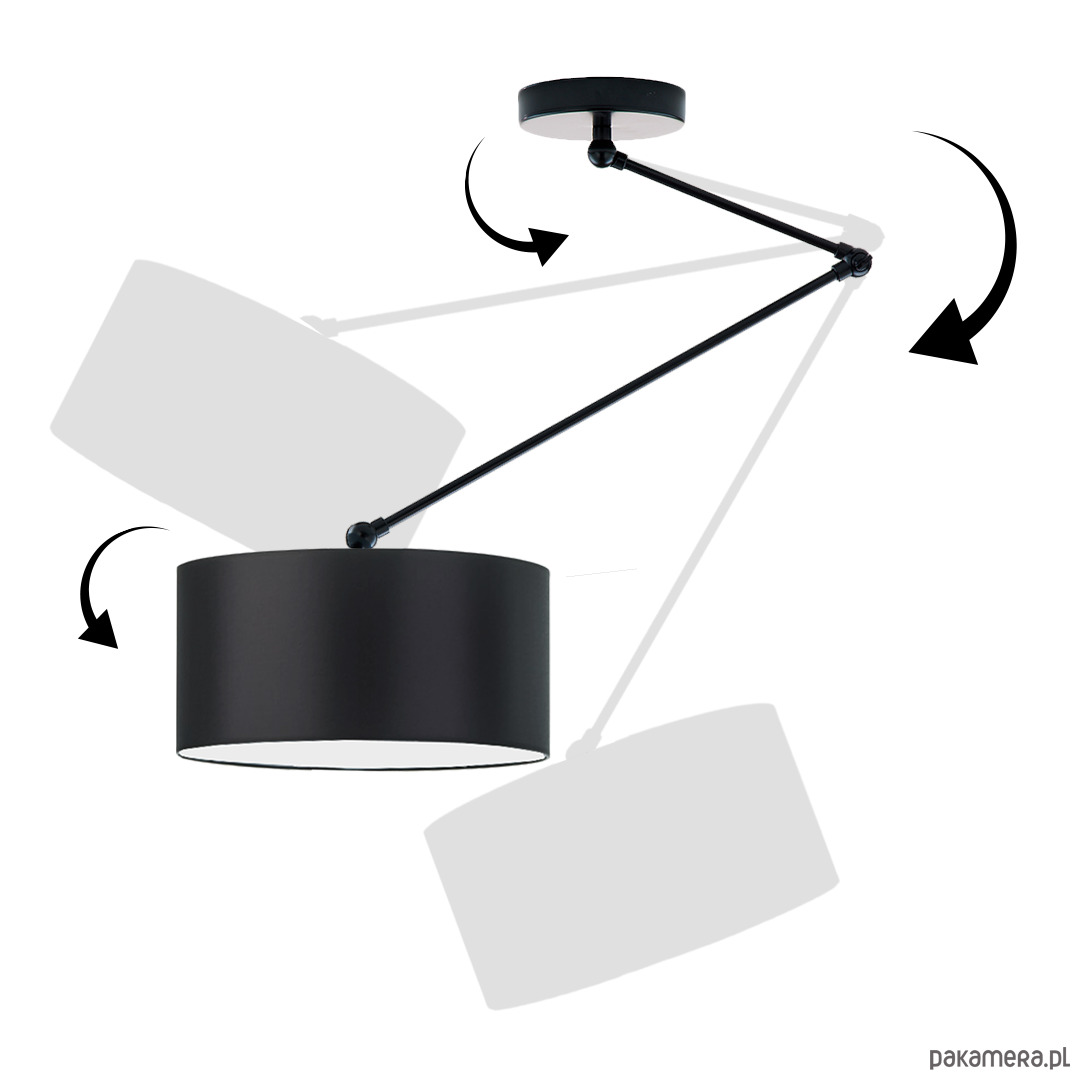 Materiał: stelaż - elementy metalowe, abażur - materiał PVC
