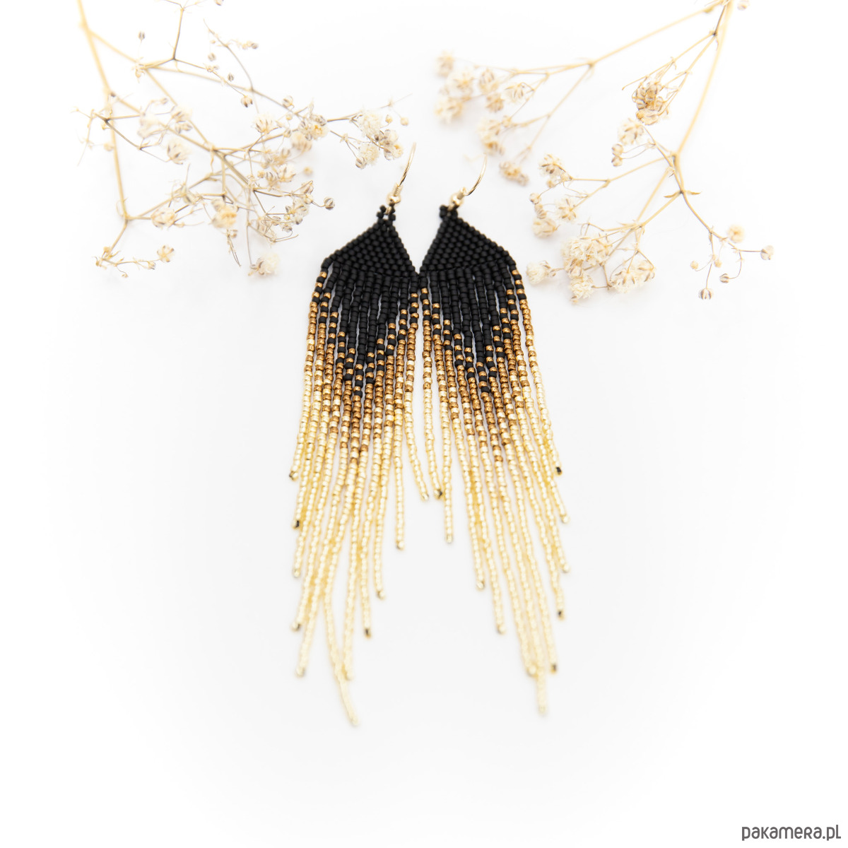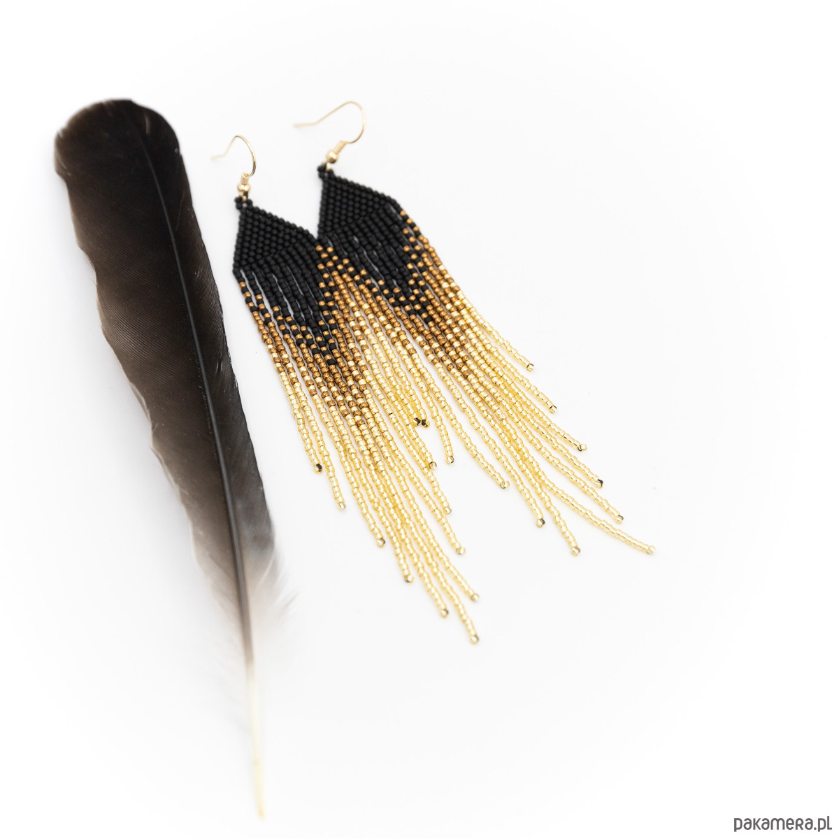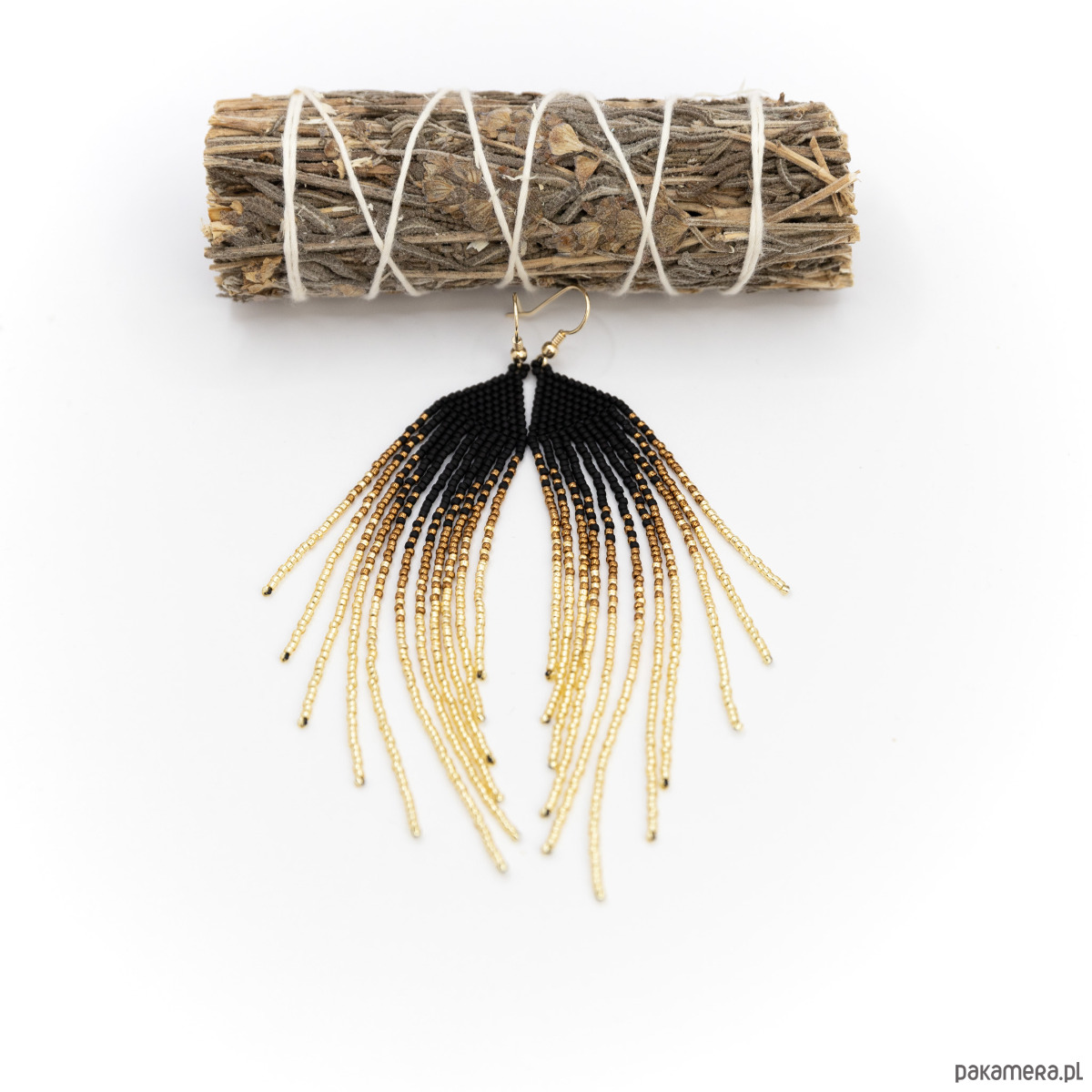 Kolczyki koralikowe cieniowane kolorami: czarnym, miedzianym, złotym