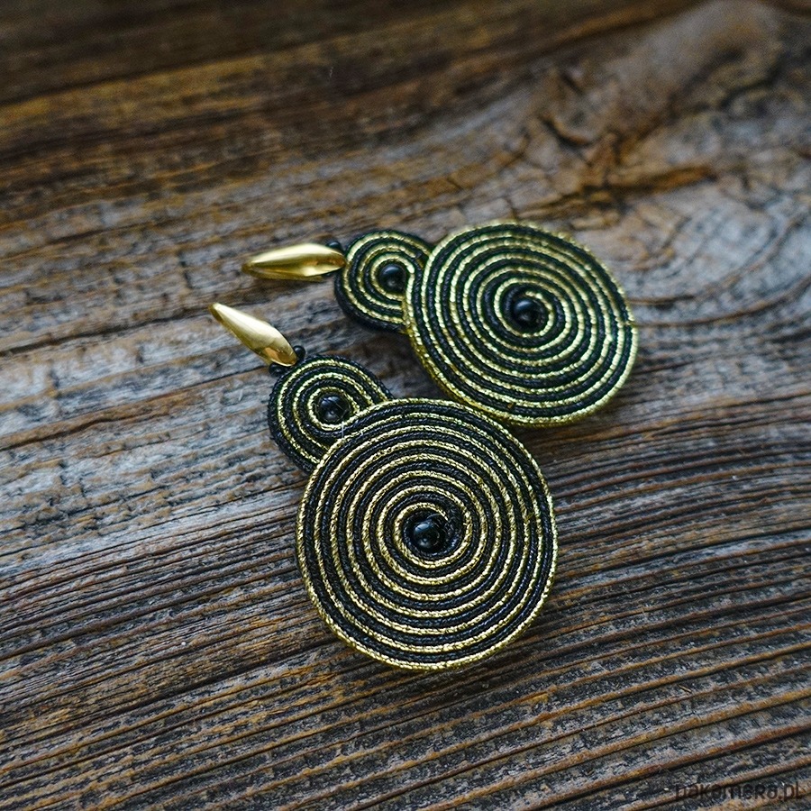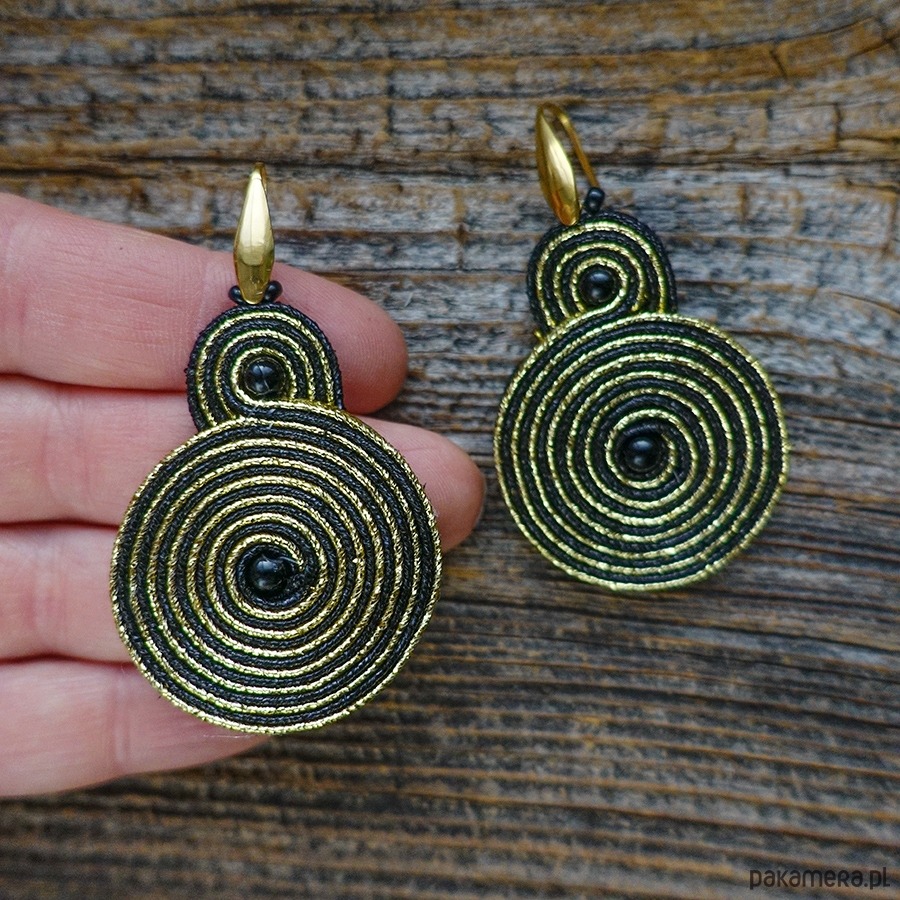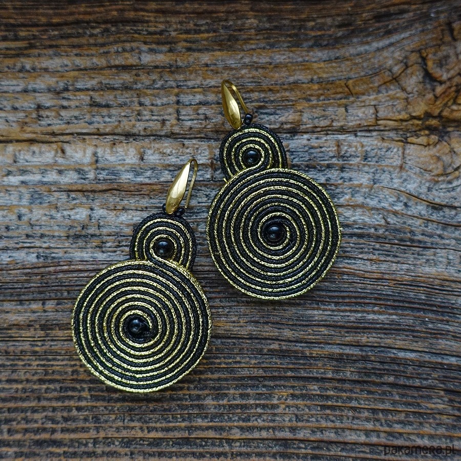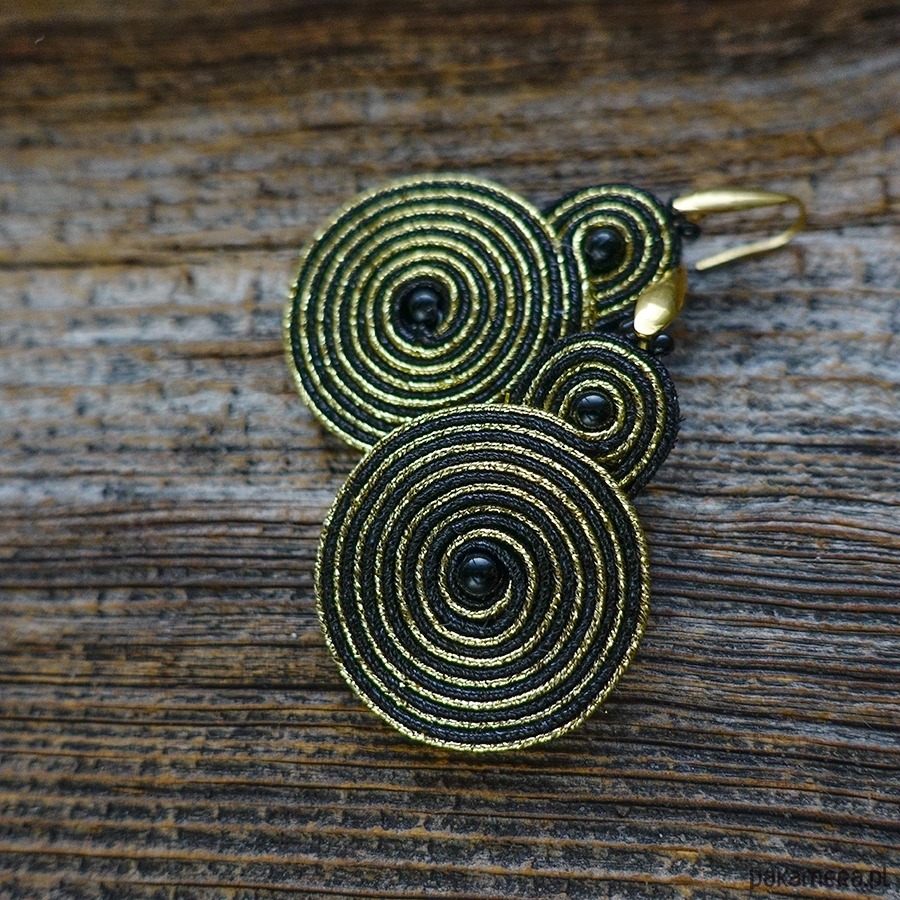 Czarno- złote spirale kolczyki soutache