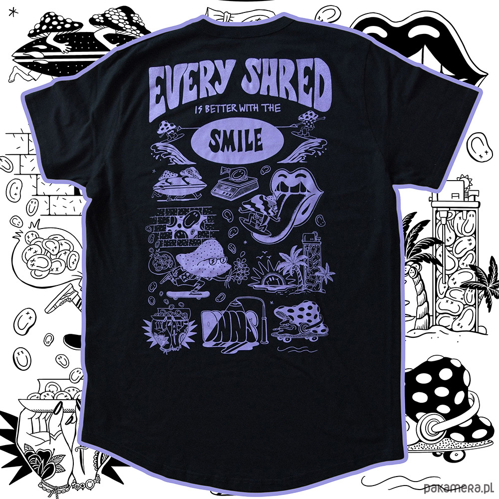 DŁUGI, CZARNY T-SHIRT Z GRZYBKAMI