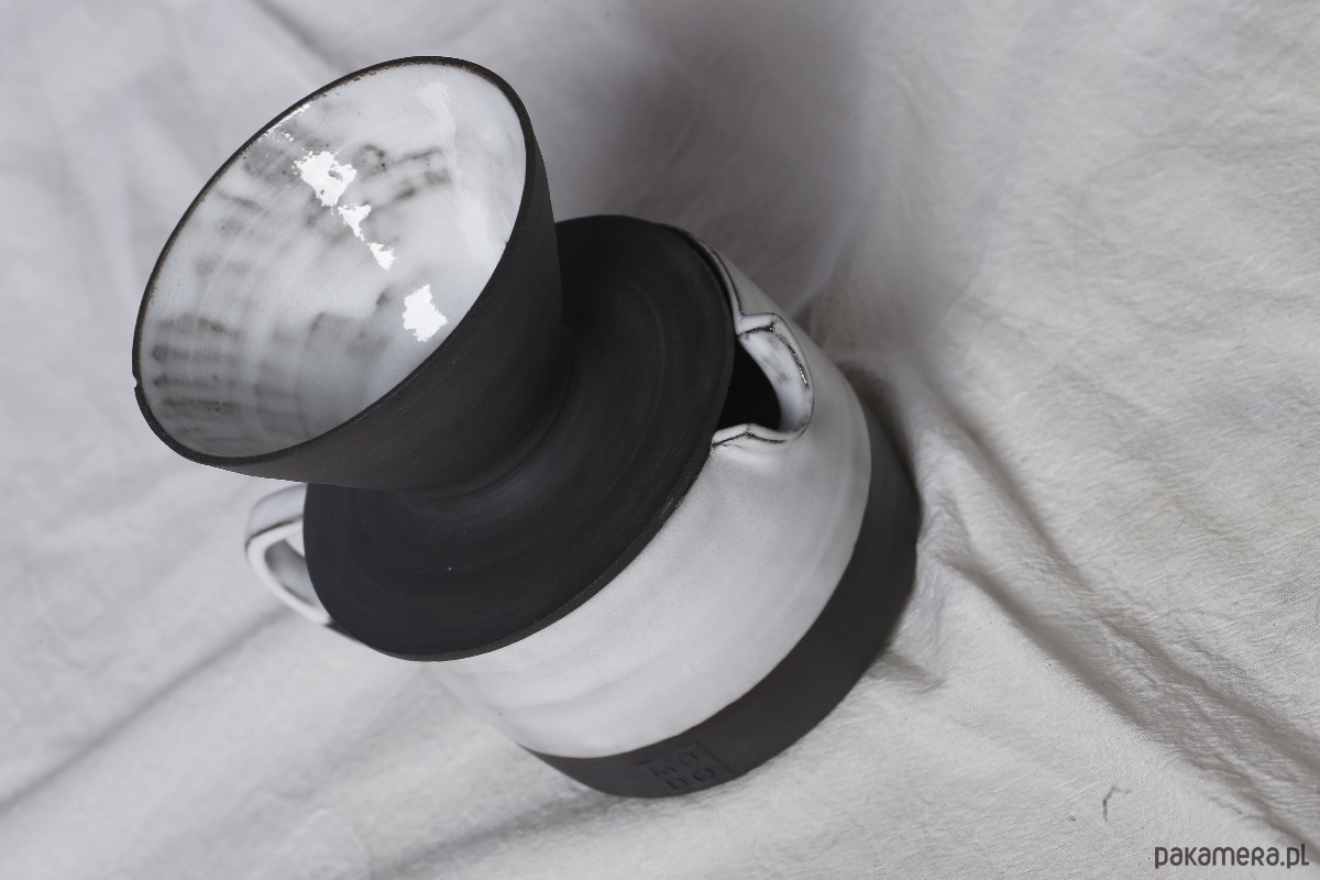 czarny dzbanek z kamionki, szkliwiony wewnątrz na biało. idealny do kompletu z dripperem do parzenia kawy (do kupienia osobno).