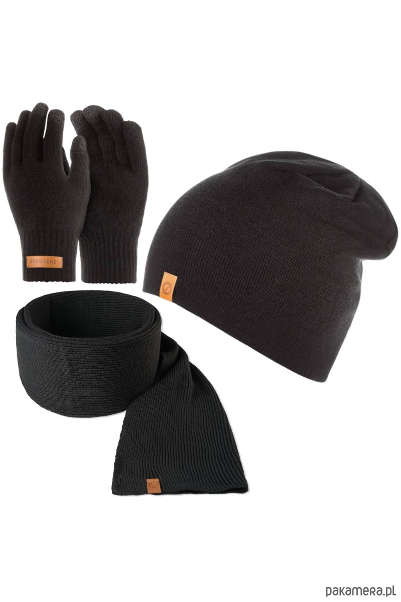 Czarny komplet brødrene czapka cz4 + szalik s5 + rękawiczki r1