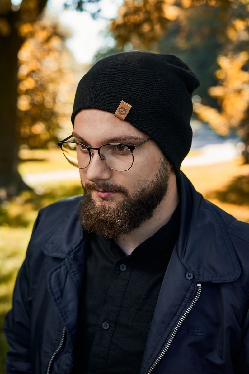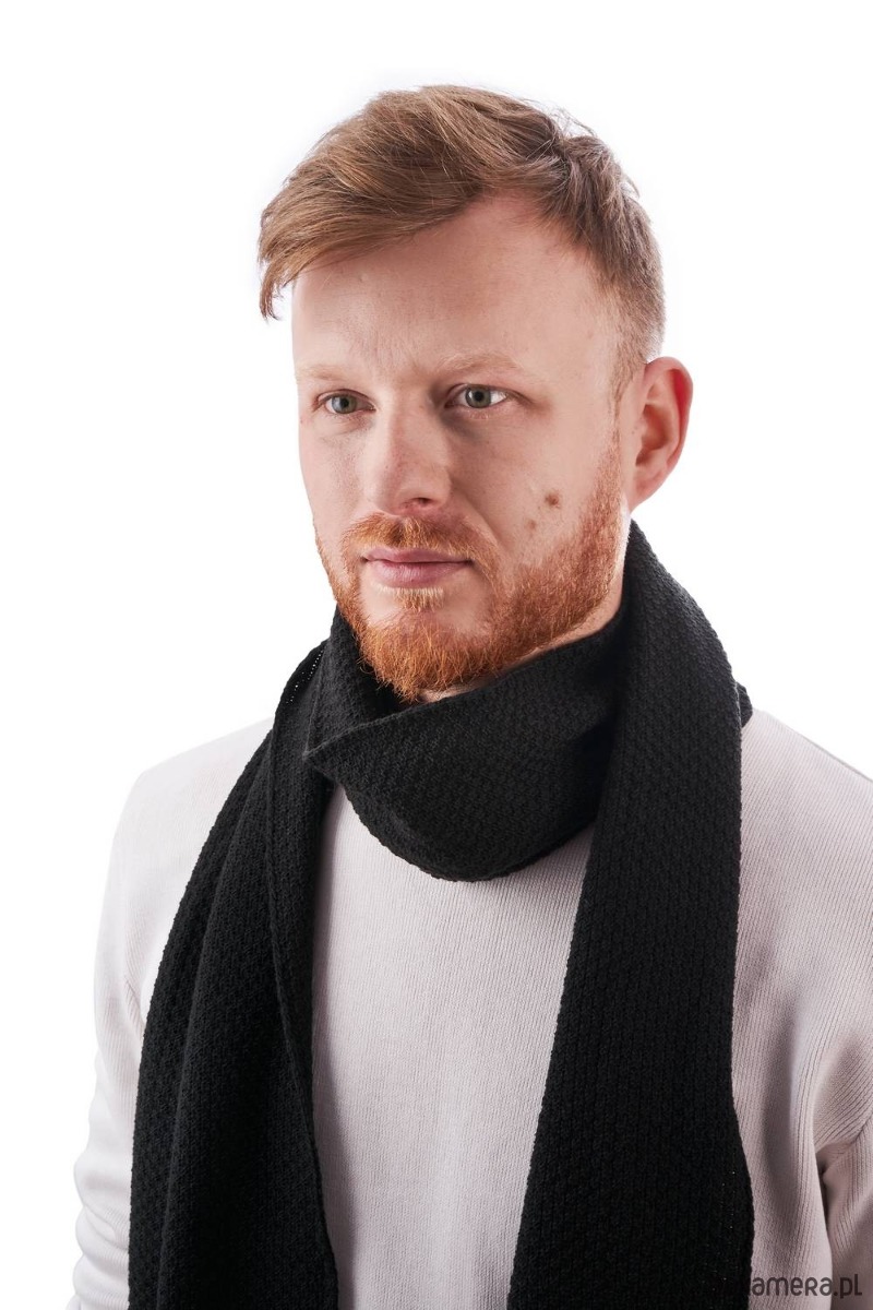 Czarny komplet męski czapka szalik rękawiczki ciepły zestaw zimowy