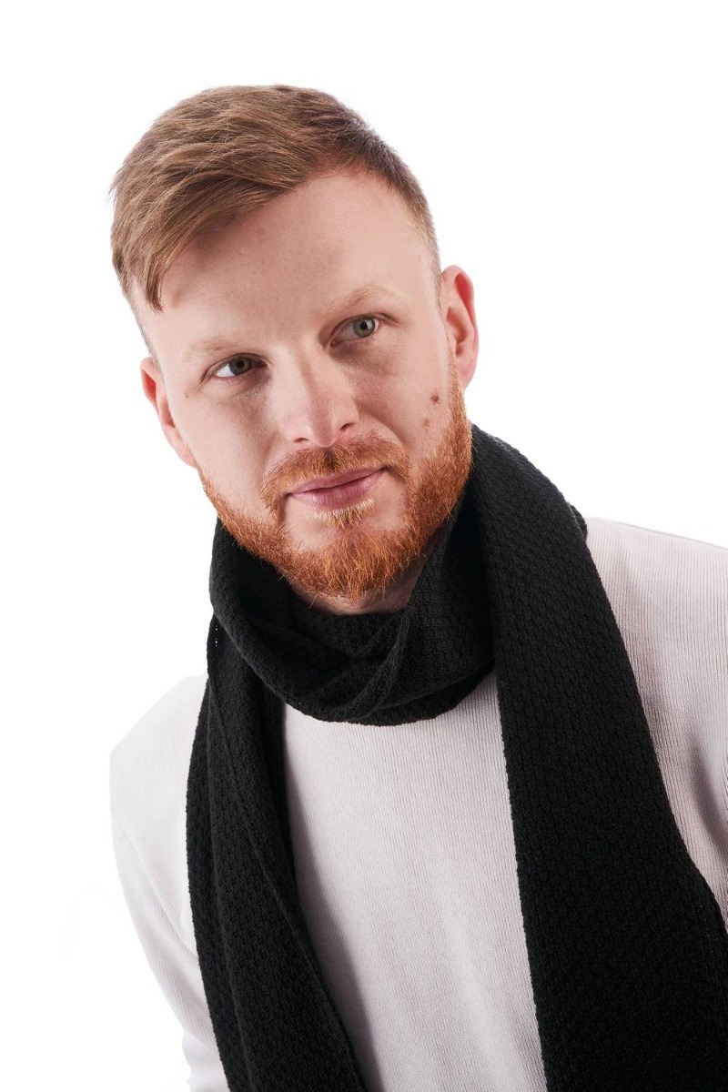 Klasyczny komplet zimowy, męska czapka z eleganckim szalikiem oraz rękawiczkami.