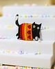 Słodka broszka z kotem w sweterku w serduszka. Uroczy, ciepły design idealny jako drobny dodatek lub prezent. Zapakowana w tekturowy kartonik.