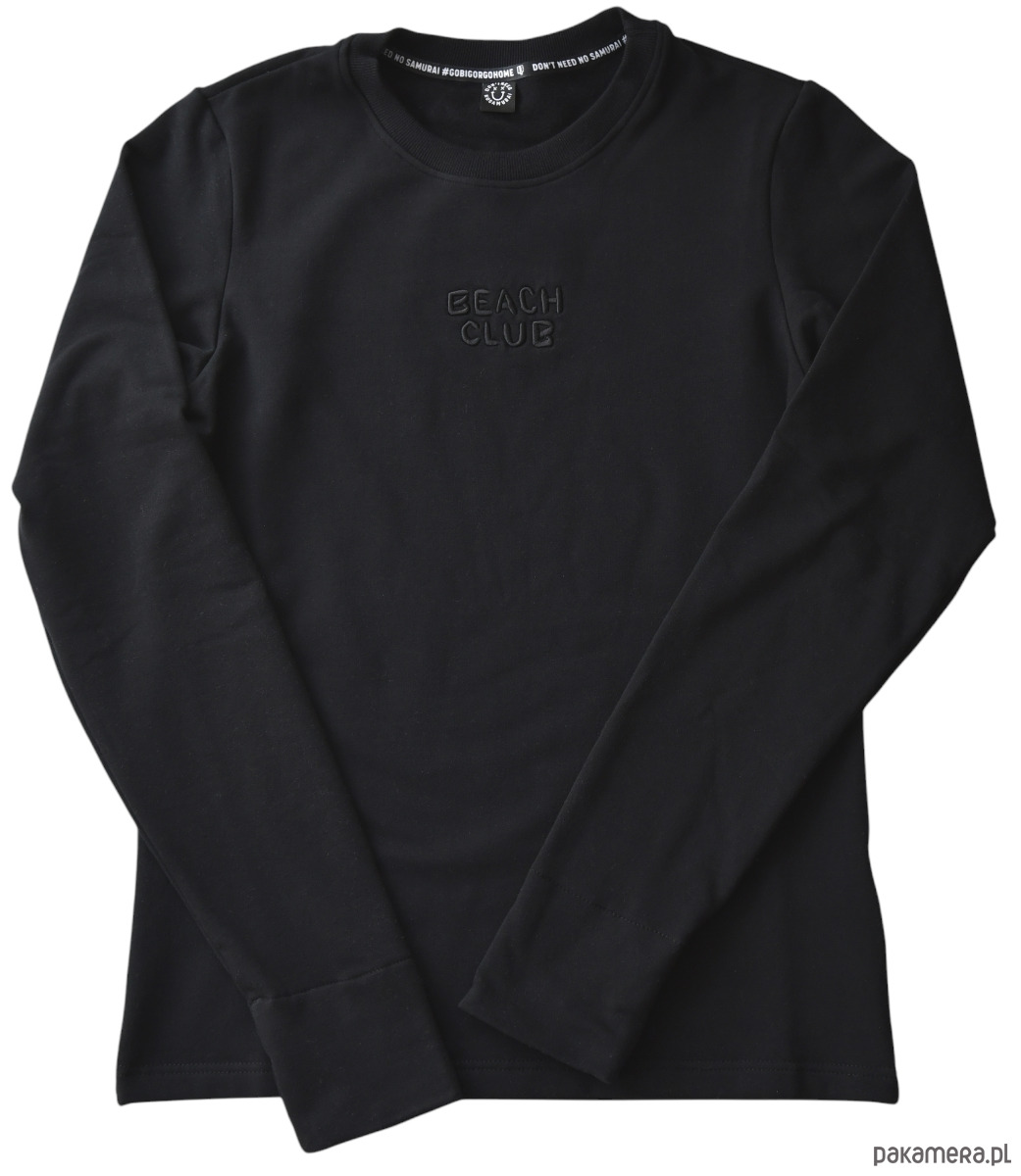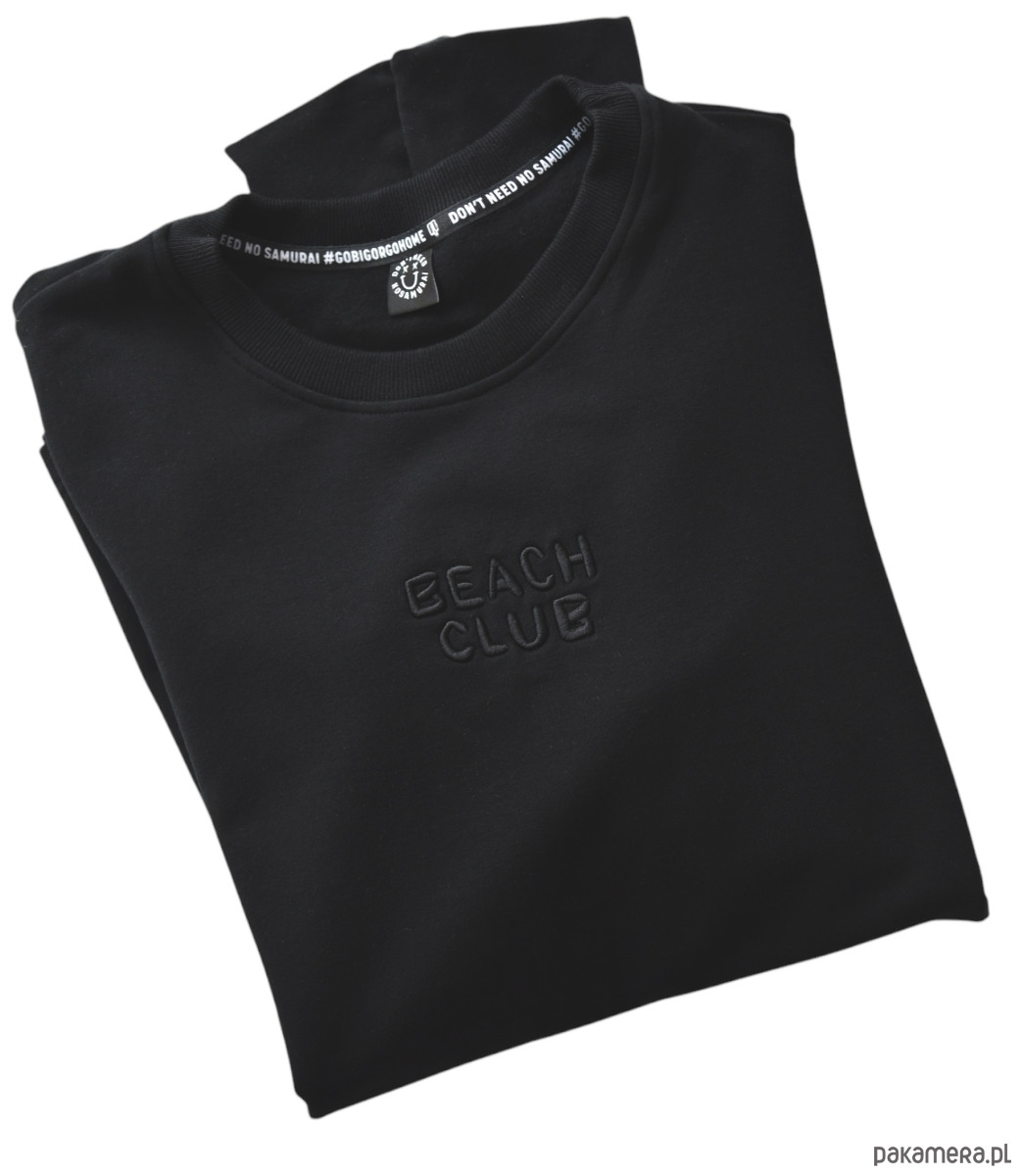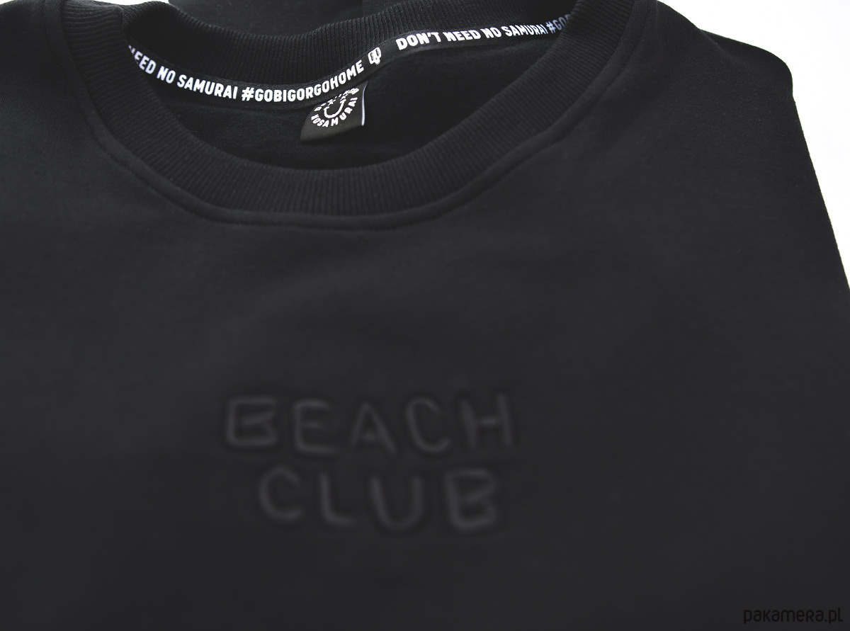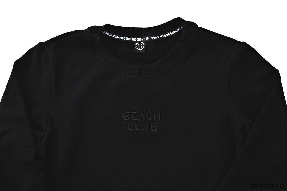 Jeśli chodzi o detale - same lajki. Extra miękka bawełna z domieszką elastanu 3%, porządne obszycie dołu, rękawów i wycięcia na kciuk. Na froncie czarny haft BEACH CLUB. Z tyłu gładko, czarno, prosto.